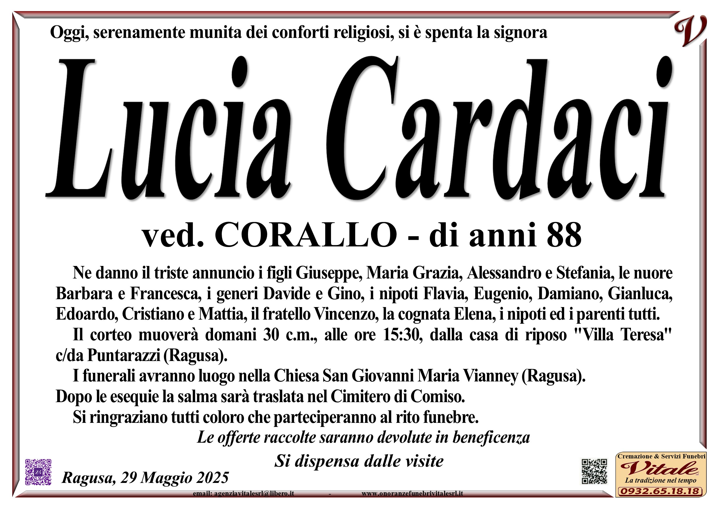 Necrologi: Lucia Cardaci