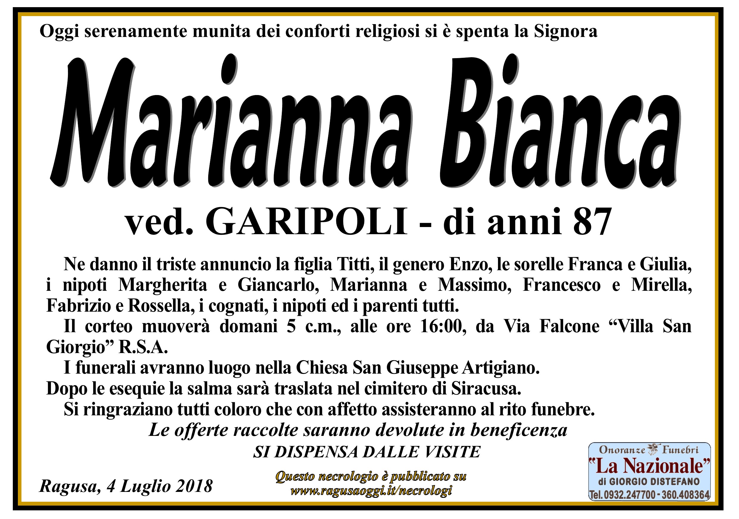 Necrologi: Marianna Bianca