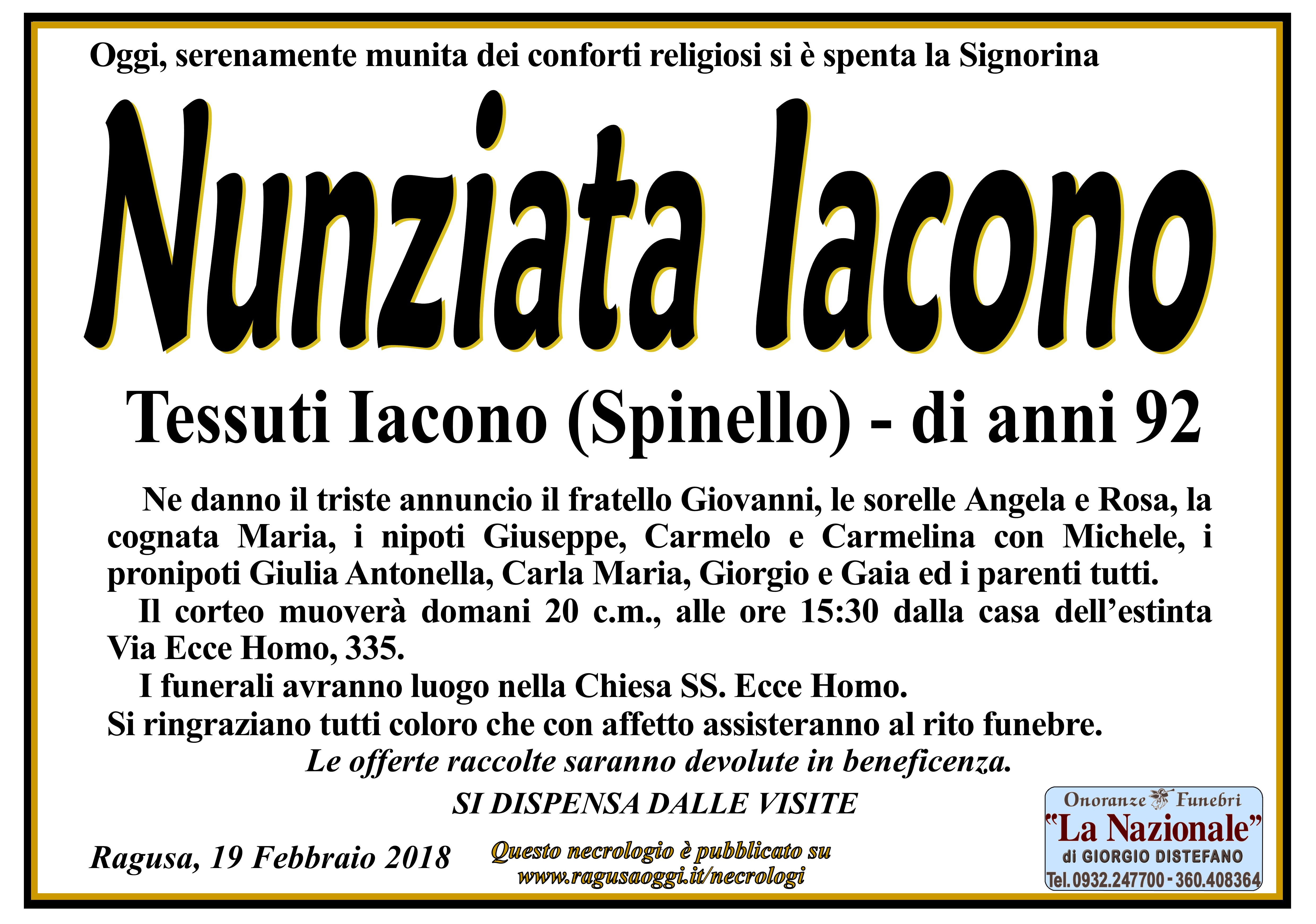 necrologi: Nunziata Iacono