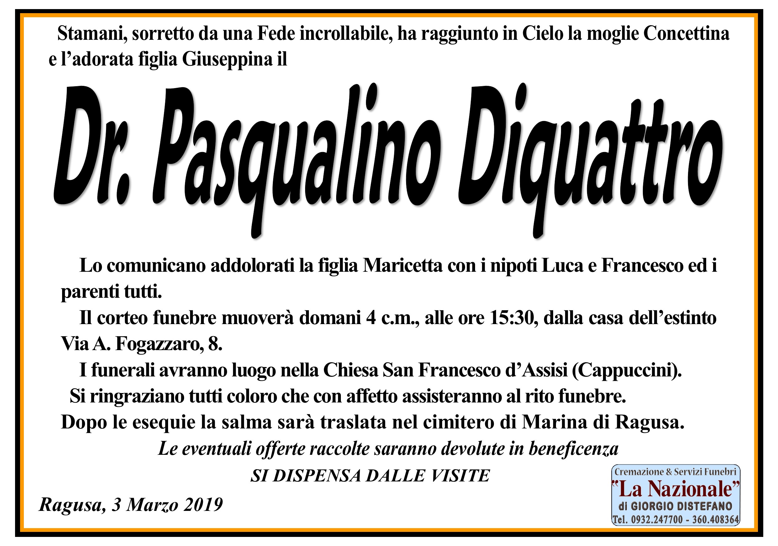 Necrologi: Pasqualino Diquattro