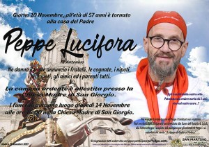 Necrologi: Peppe Lucifora. E’ aperta da stamani la camera ardente nella Chiesa di San Giorgio per dare l’ultimo addio a Peppe Lucifora. I funerali, invece, si svolgeranno domani, alle 15, nella chiesa di San Giorgio. Per onorare l’animo buono di Peppe i familiari non vogliono fiori ma donazioni, il ricavato sara devoluto alle suore del … Leggi tutto Questo giovedì i funerali di Peppe Lucifora. Le donazioni saranno devolute per il benessere degli animali
