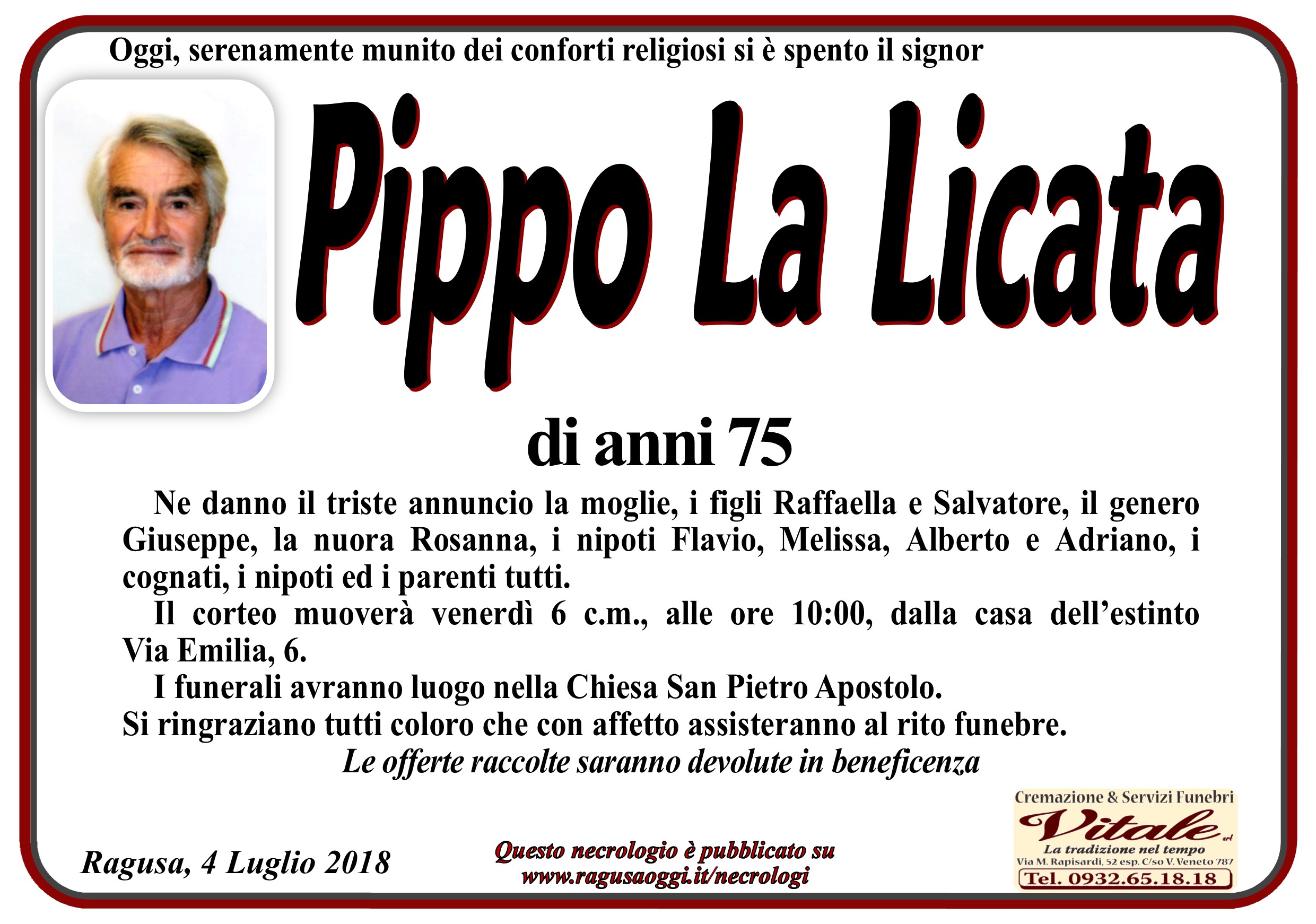 Necrologi: Pippo La Licata