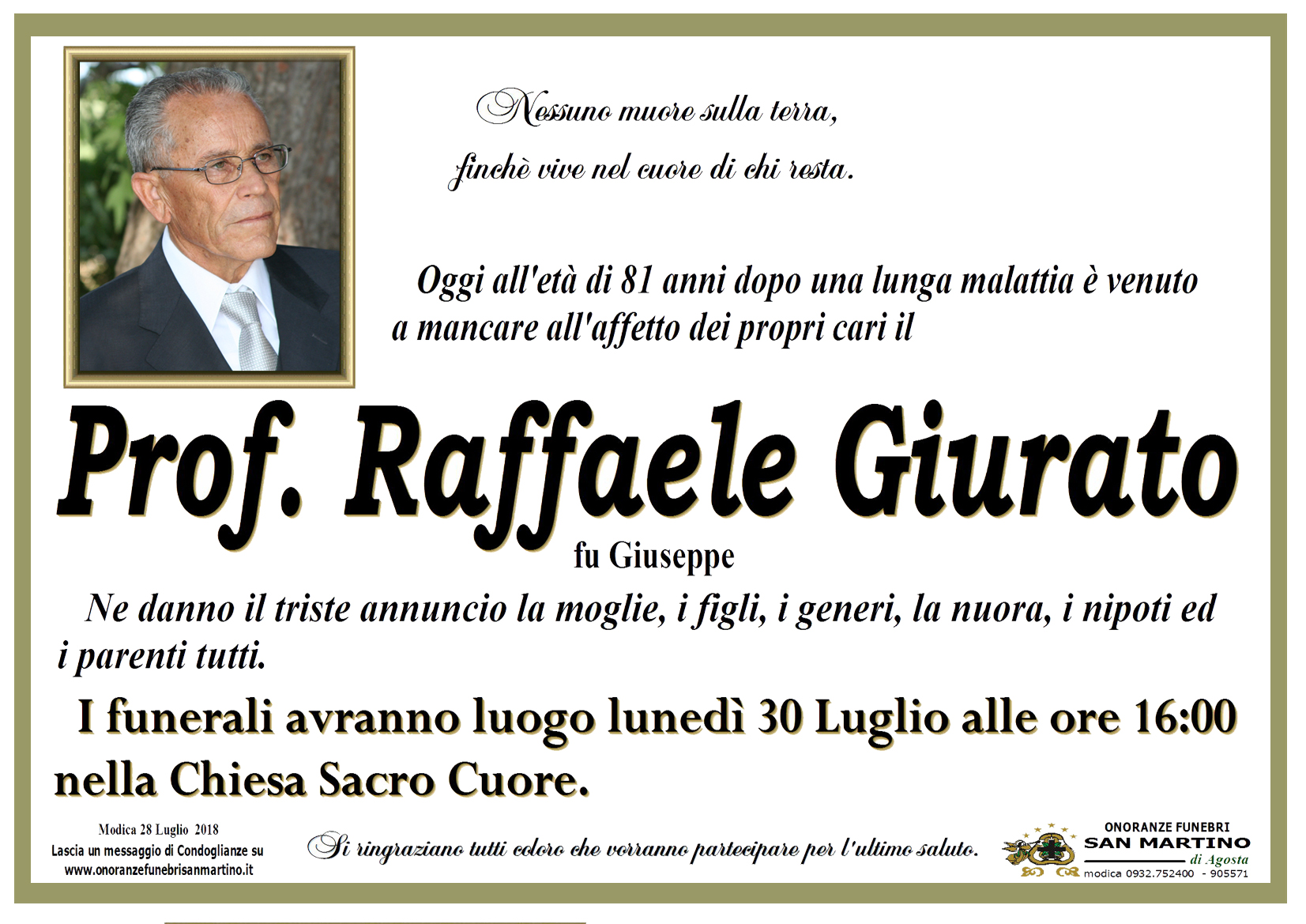 Necrologi Raffaele Giurato