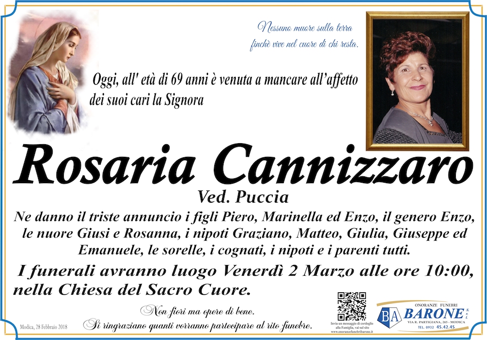 Necrologi: Rosaria Cannizzaro