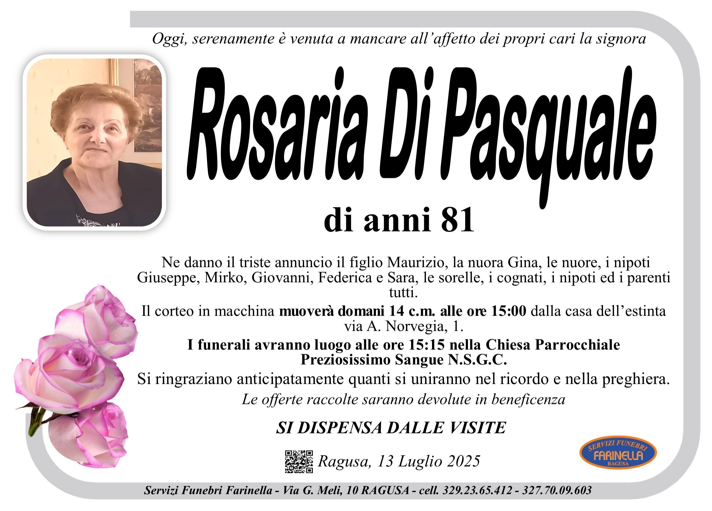 Necrologi: Rosaria Di Pasquale
