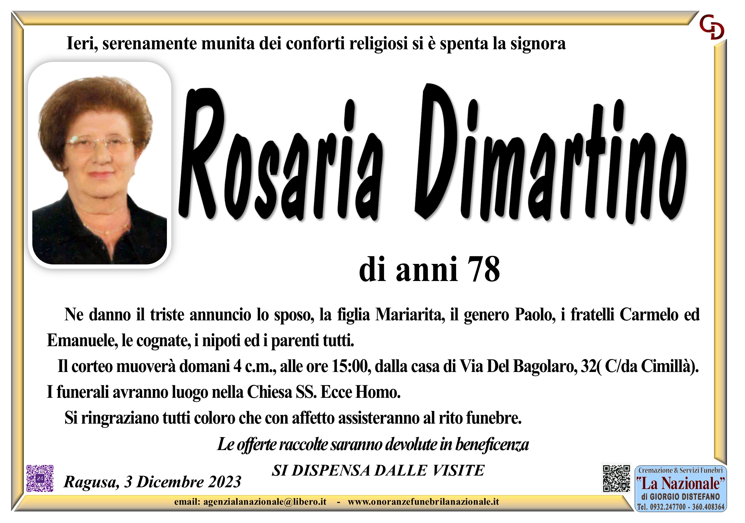 Necrologi: Rosaria Dimartino