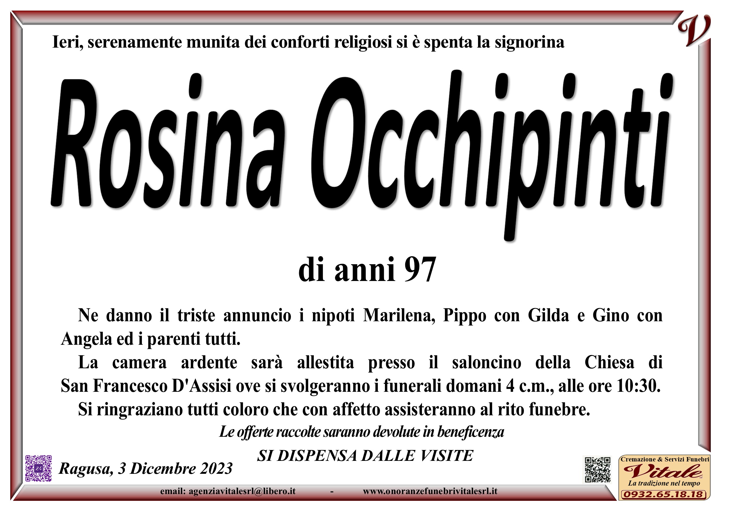 Necrologi: Rosina Occhipinti
