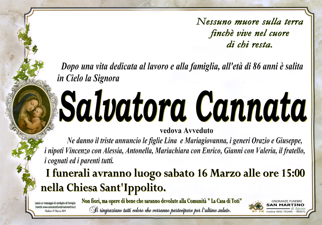 Necrologi: Salvatora Cannata