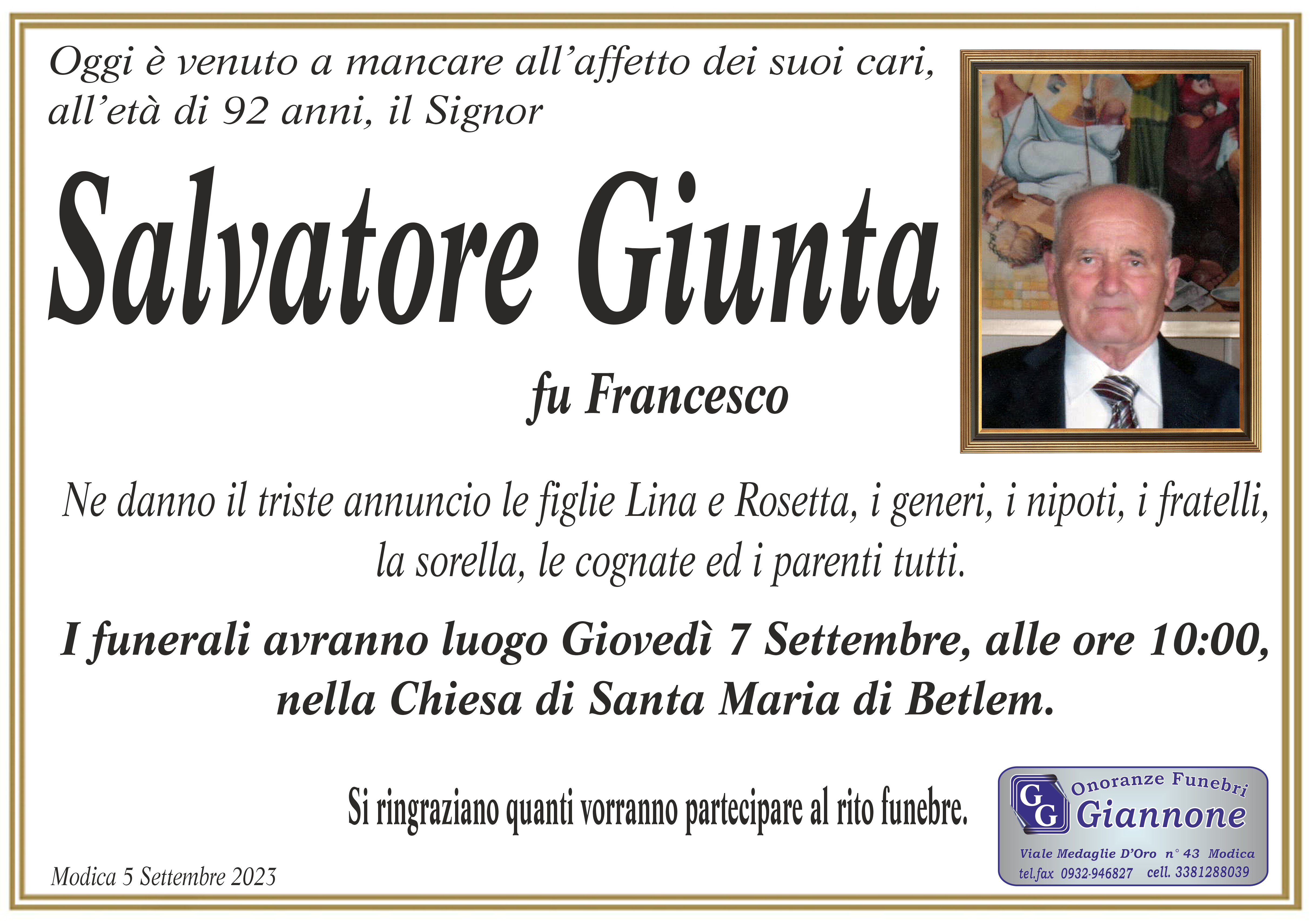 Necrologi: Salvatore Giunta