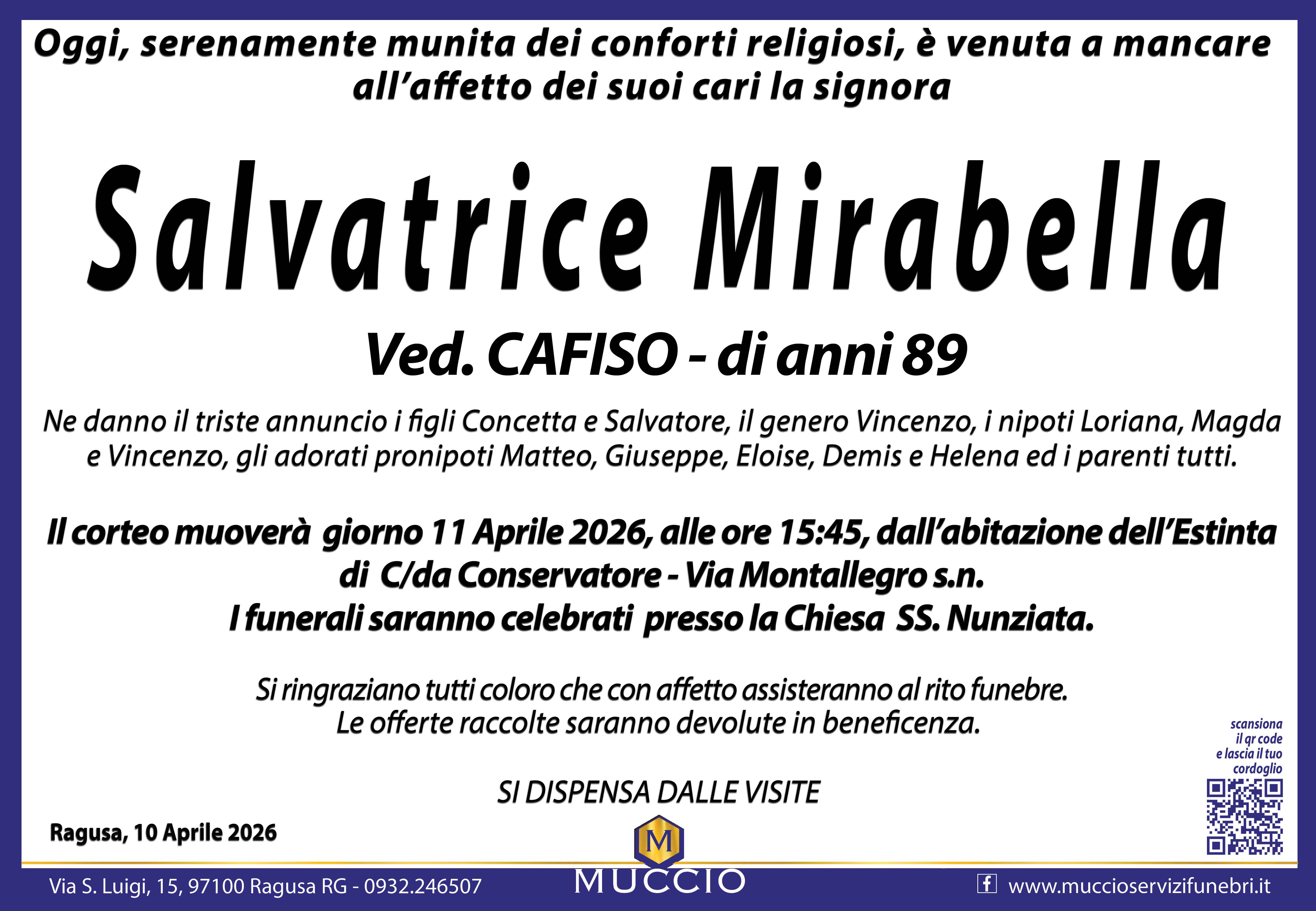 Necrologi: Salvatrice Mirabella
