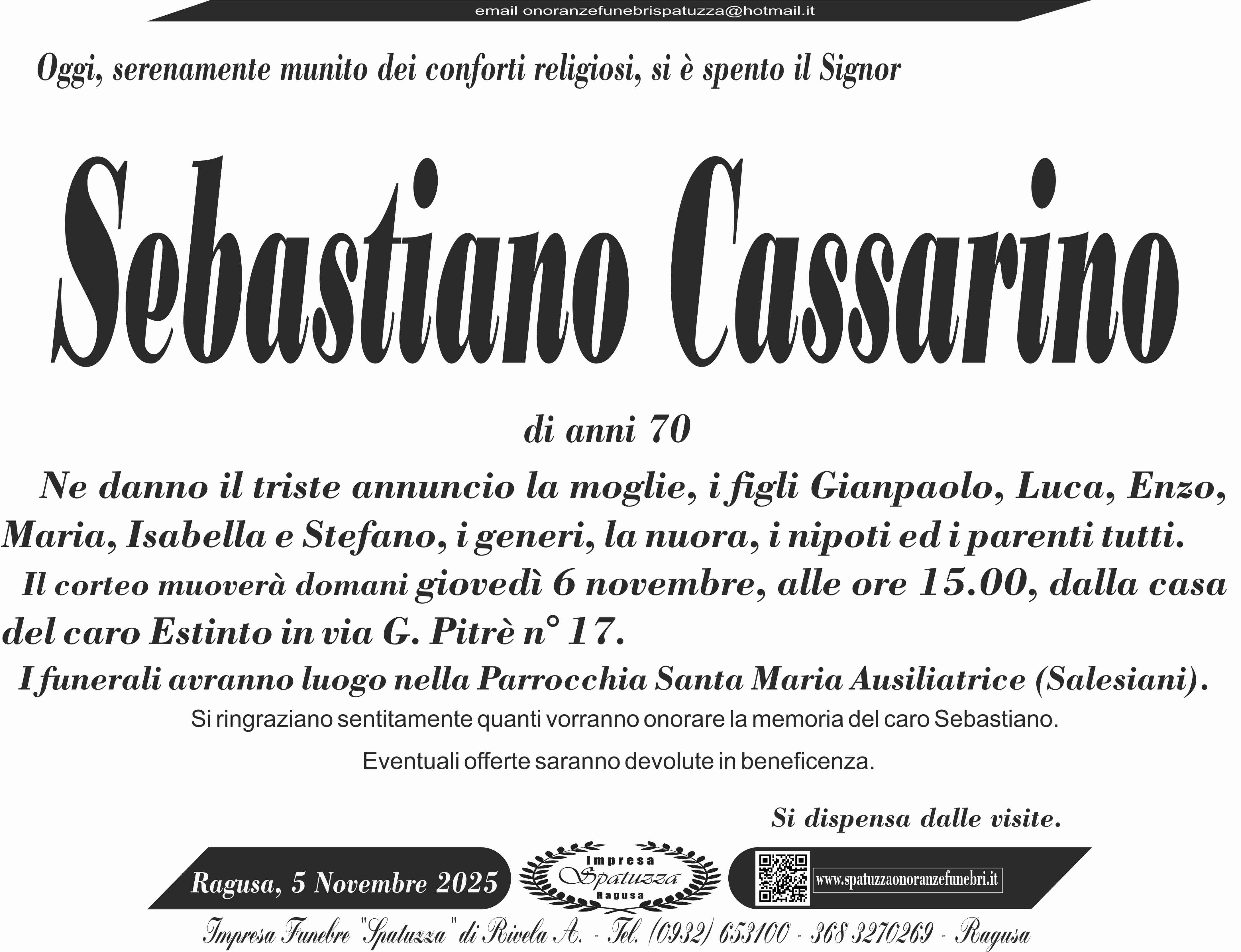 Necrologi Sebastiano Cassarino