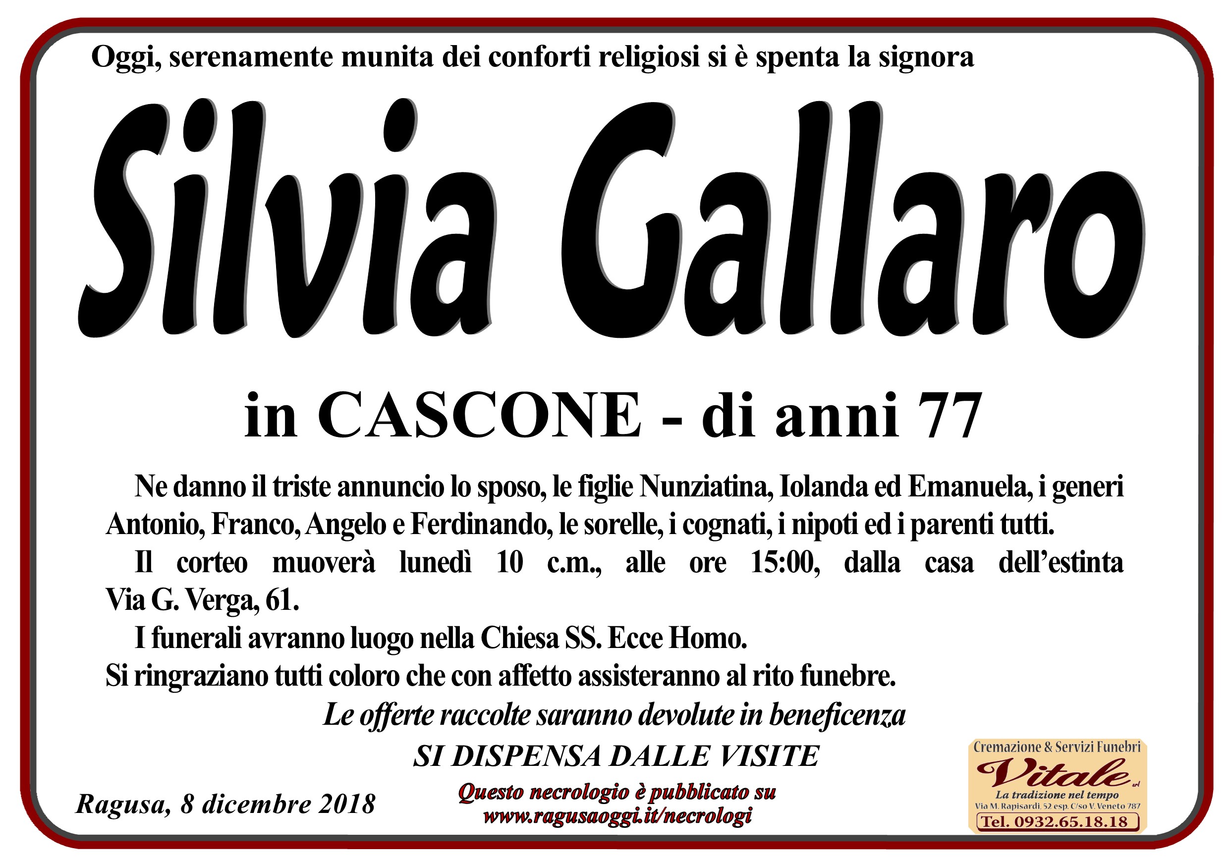 Necrologi Silvia Gallaro