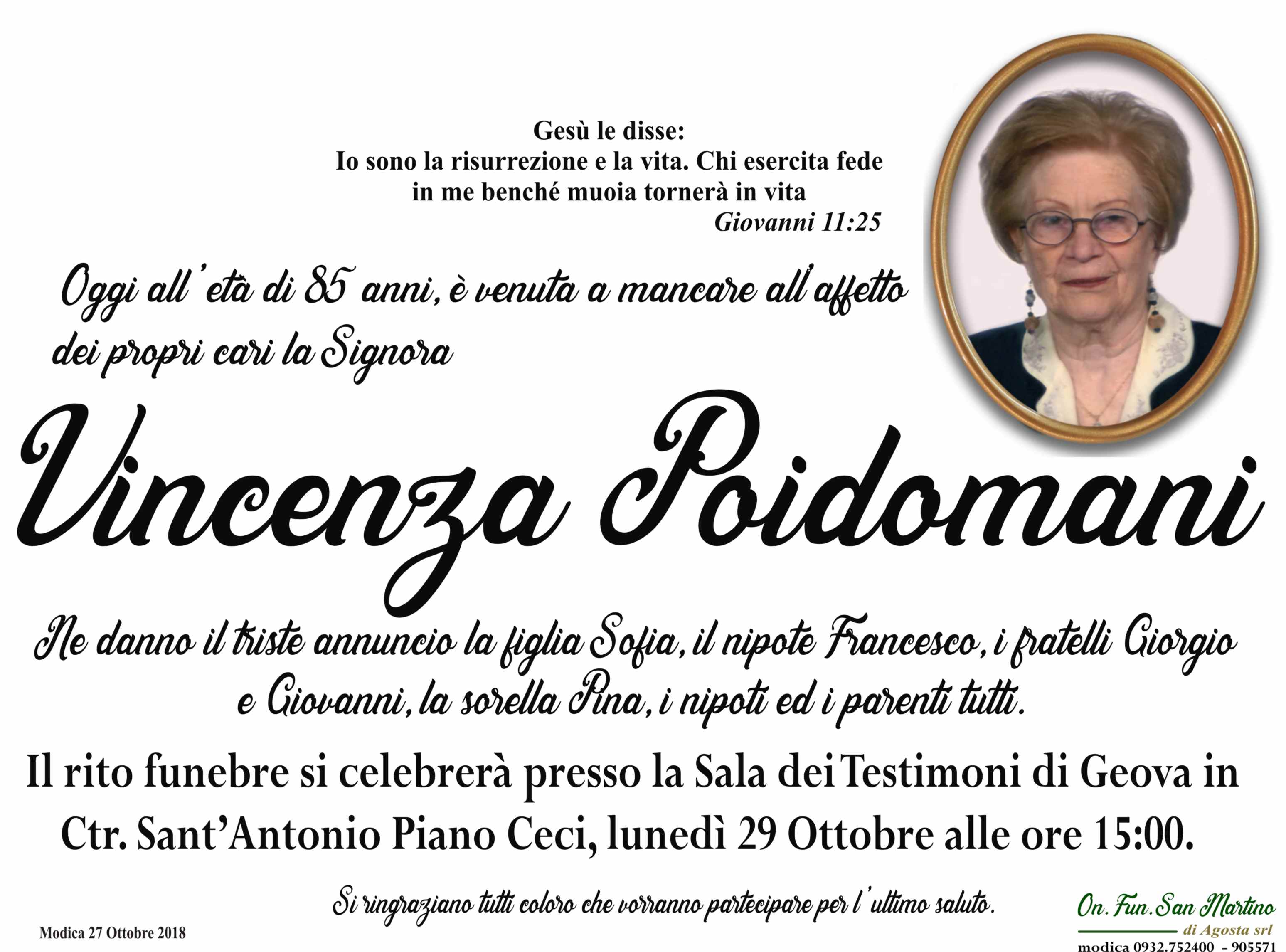 Necrologi: Vincenza Poidomani