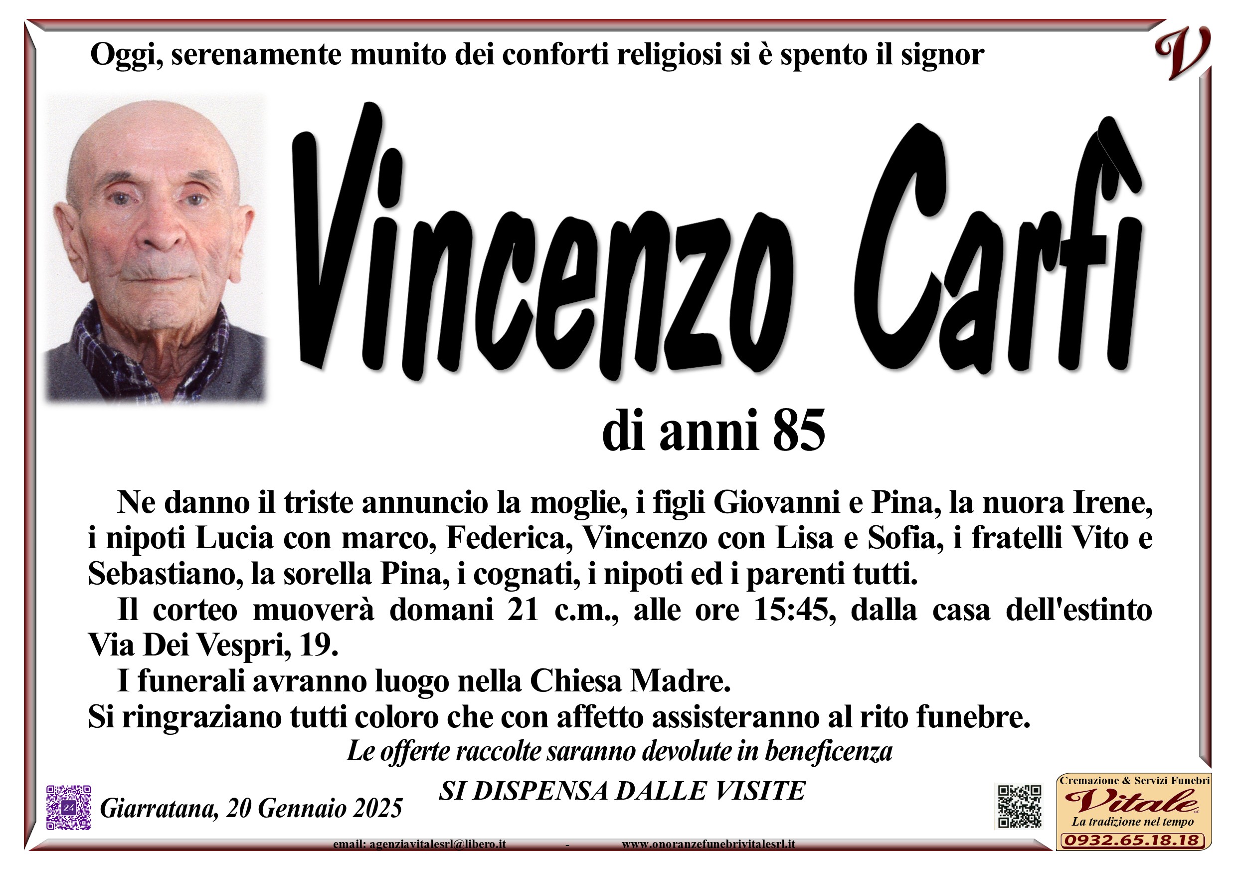Necrologi: Vincenzo Carfì