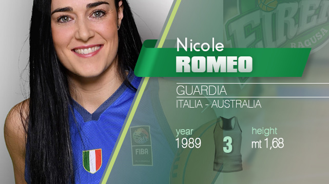 La play-guardia della nazionale italiana, Nicole Romeo, è della Passalacqua Ragusa. La forte esterna australiana, con doppio passaporto, che quest’anno aveva firmato con la formazione turca del Calik Balediyesi Samsun, ha deciso di liberarsi per sposare il progetto e la proposta della società ragusana, che non si è fatta sfuggire l’occasione di ingaggiare una giocatrice che potenzierà il reparto esterne e che contribuirà ad allungare le rotazioni a disposizione di coach Gianni Recupido. Proprio il pubblico di Ragusa l’ha conosciuta lo scorso anno, in Eurocup, quando la neo giocatrice biancoverde militava con Girona. Nicole Romeo, classe 1989, è un play-guardia di 168 cm con buone doti di penetrazione e tiro da tre, ed ha frequentato per un anno il college a Washington, prima di tornare nel suo Paese per la prima parte della sua carriera professionistica: Canberra Capitals dal 2009 al 2011, Townsville Fire dal 2011 al 2013, Melbourne Boomers nella stagione 2013-14. In questi anni ha trovato modo di approdare anche in campionati dei singoli stati dell’Australia, nella Queensland Basketball League e nella South East Australian Basketball League, in cui ha dominato le partite in lungo e in largo.