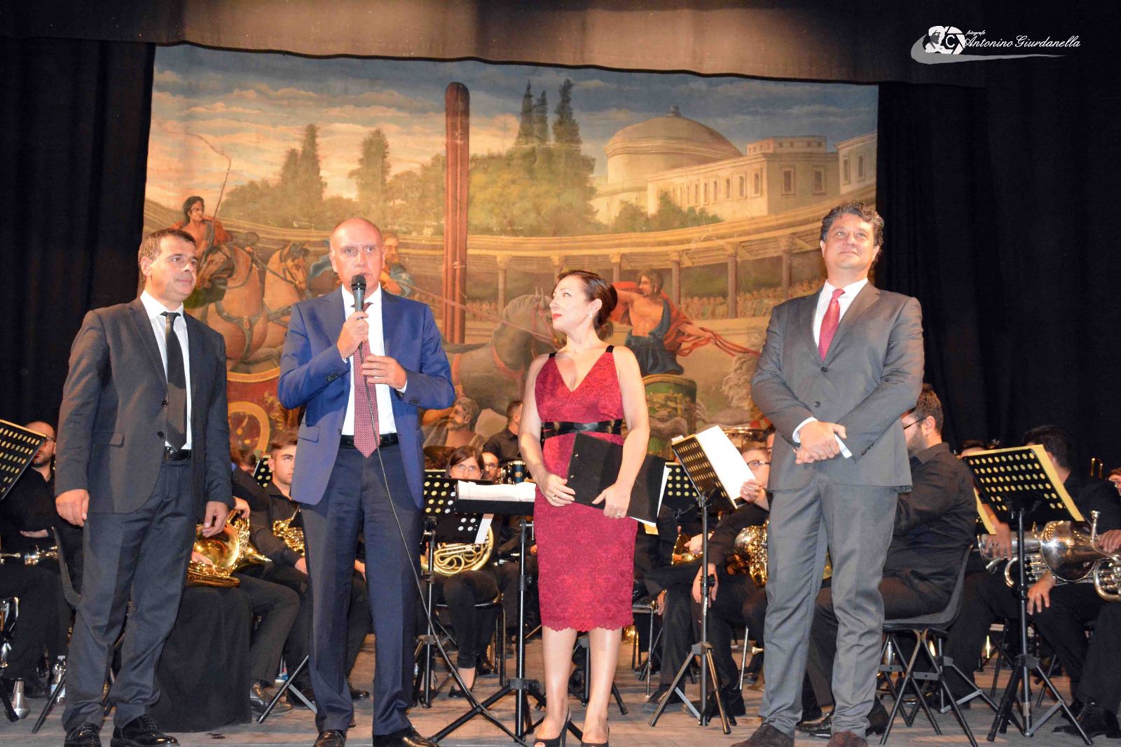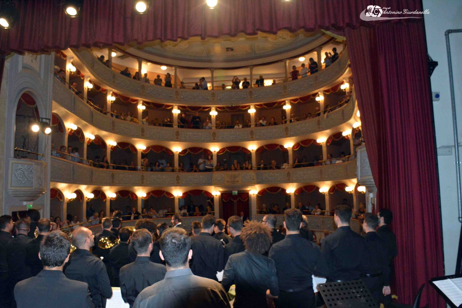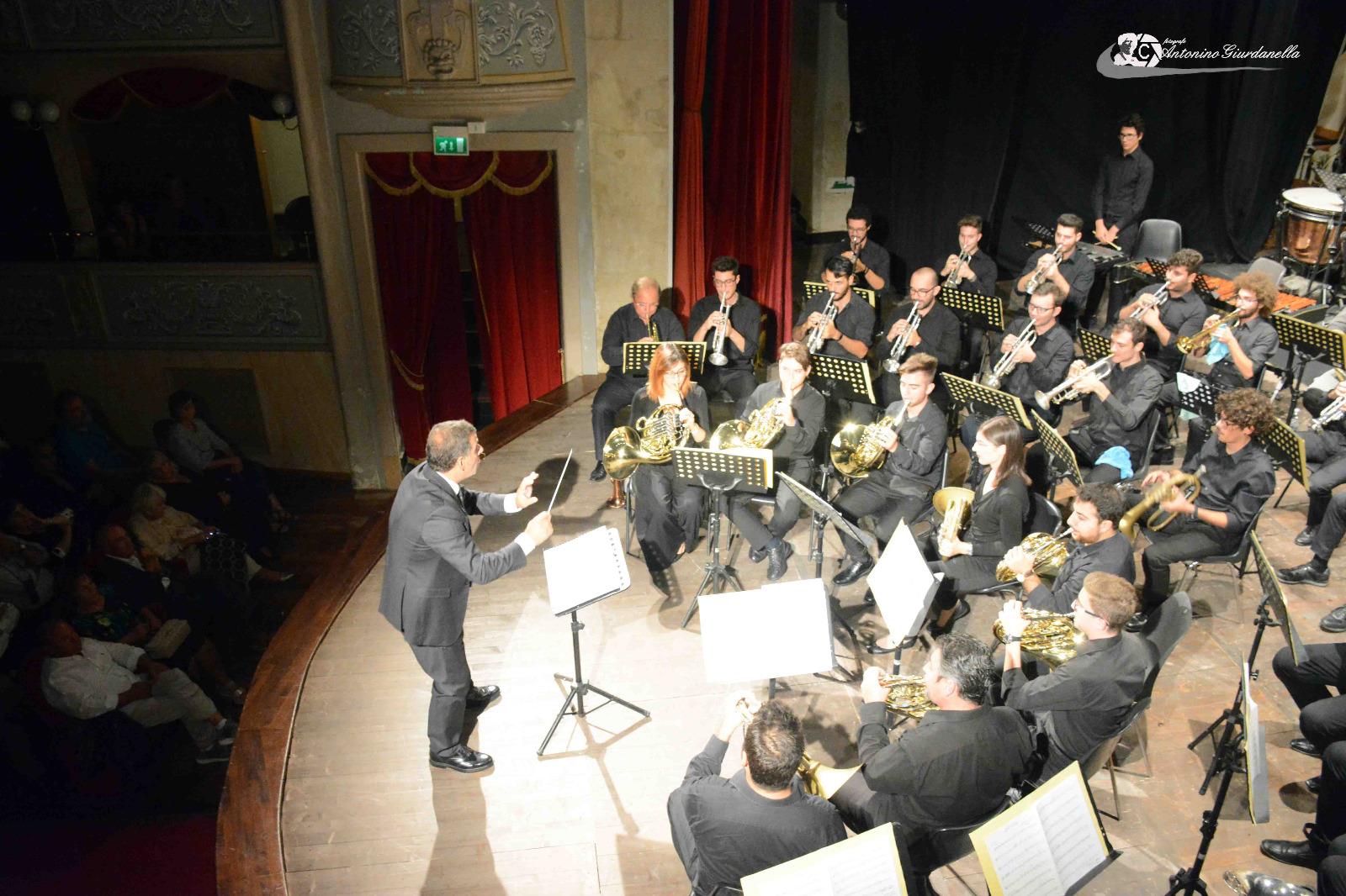 L’Italian Brass Band, ensemble di 50 elementi, solo ottoni e percussioni, dell’Istituto Superiore di Studi Musicali ‘V. Bellini’ di Catania, diretta dal maestro Salvatore Distefano, ha fatto commuovere, appassionare, entusiasmare, persino applaudire e muovere i piedi sotto le poltrone al ritmo delle più belle colonne di sempre, egregiamente eseguite dai bravissimi allievi universitari, dai docenti delle classi di tromba, trombone, corno e strumenti a percussione e dagli ex allievi che sono diventati musicisti professionisti, di cui è composto l’ensemble. Star Wars, My name is Bond, The last of Mohicans, Beauty and the Beast, La strada, sono alcuni dei film che hanno rivissuto sabato attraverso le loro colonne sonore. Un excursus tra le più famose pellicole cinematografiche, tra cui anche The Magnificient Seven, Pearl Harbor, Salvate il soldato Ryan, Grease, attraverso le musiche di John Williams, Norman/Bart/Bricusse/Newley, Trevor Jones, Alan Menken, Nino Rota, Elmer Bernstein, Hans Zimmer, Claude Francois, Gibb/Jacobs/Farrer e Sullivan/Peterik, che ha regalato emozioni pure in una serata magica, condotta da Cinzia Vernuccio. Un particolare ringraziamento al M° Salvatore Distefano, al M° Carmelo Fede, e al M° Camillo Pavone che hanno guidato i bravissimi allievi della Italian Brass Band.