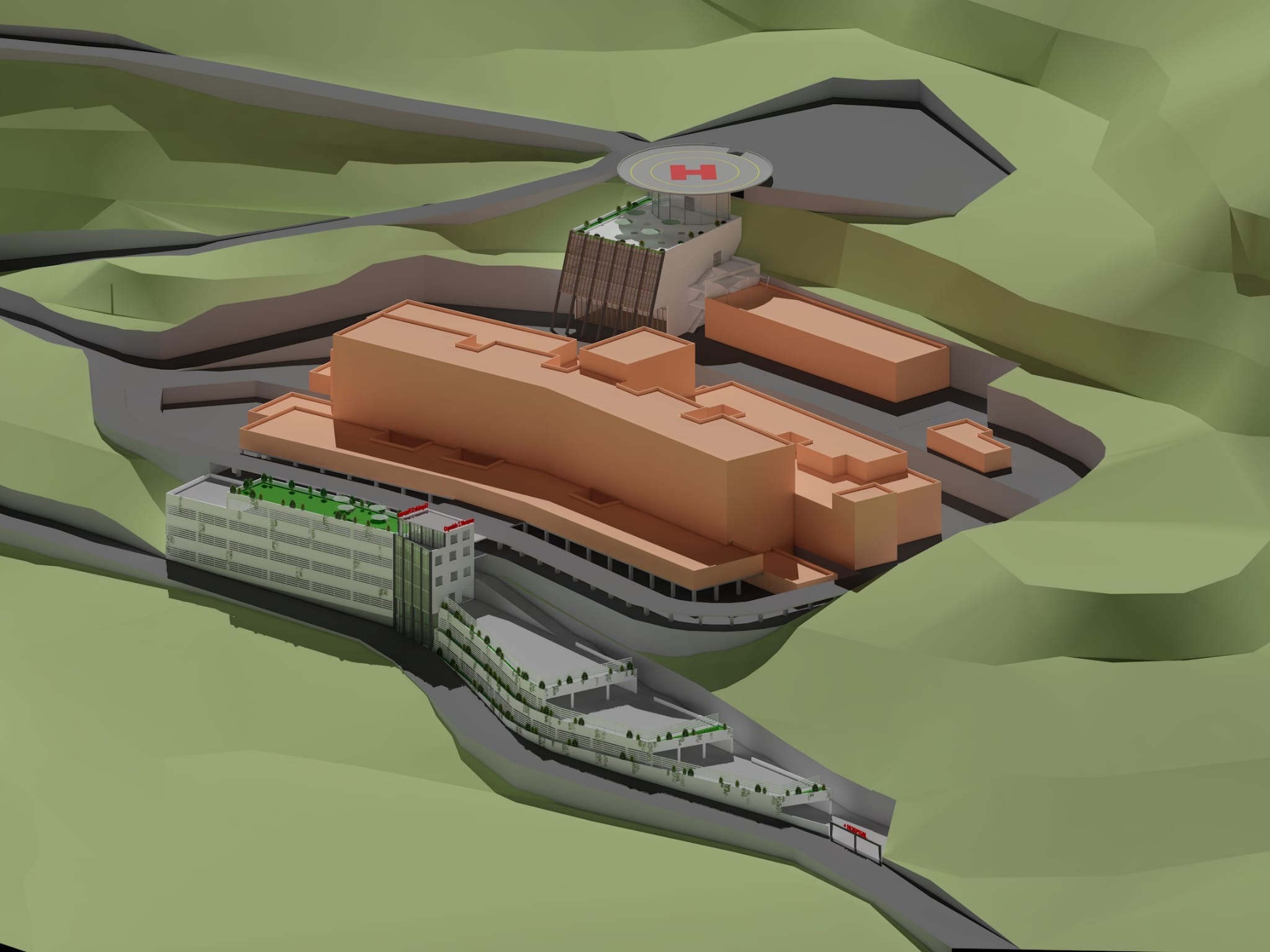 In particolare, la piazzola per l'elisoccorso sarà realizzata nel corpo a monte composto da sette piani e dove, tra l'altro, troveranno spazio anche un centro direzionale, alcuni locali per ospitare i familiari dei degenti, una cucina con self-service e un auditorium. Sette piani anche per il fabbricato a valle che sarà adibito a parcheggio. Potrà contenere fino a 283 auto e 76 motocicli. L'impegno di spesa previsto è di oltre 26 milioni e mezzo di euro.