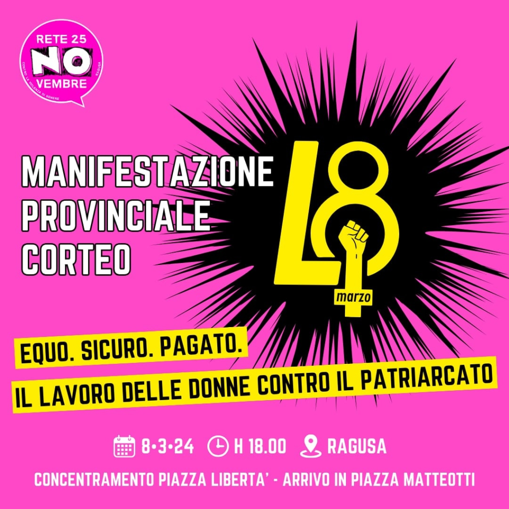 La Rete 25 Novembre organizza una manifestazione provinciale a Ragusa per venerdì 8 marzo, con un focus particolare sul tema “Donne e Lavoro”. L’evento, intitolato “Lotto Marzo per il Lavoro: Equo, Sicuro, Pagato contro il Patriarcato”, si preannuncia come una forte presa di posizione contro lo sfruttamento, la precarietà e la violenza che il sistema patriarcale perpetua sulle vite e sui corpi delle donne.