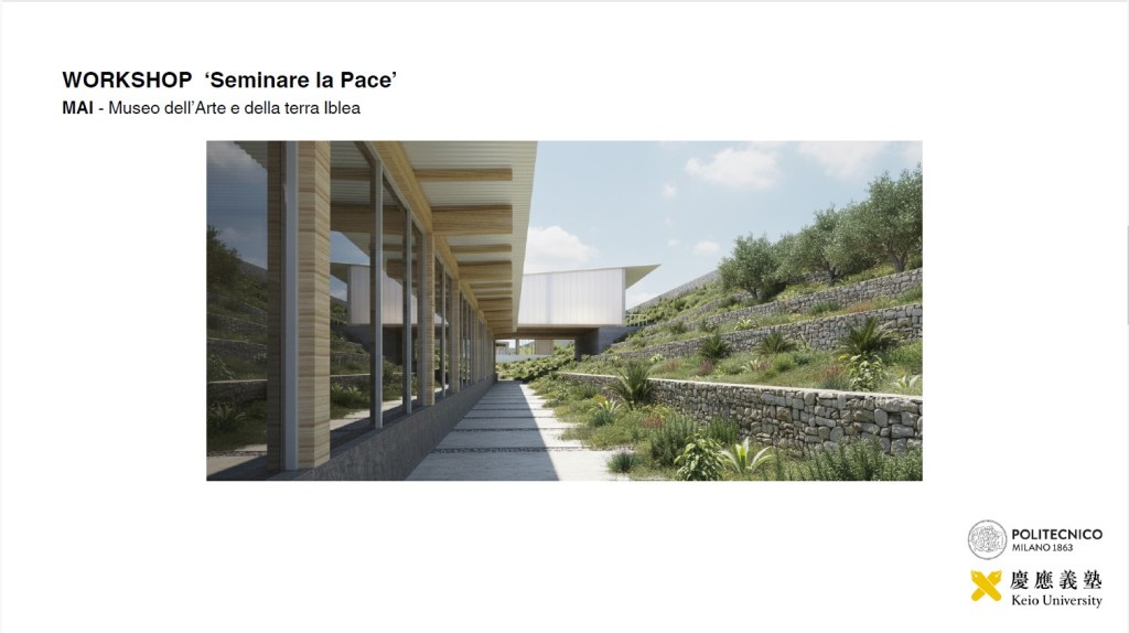 Il workshop nasce dal progetto di tesi magistrale in Ingegneria Edile-Architettura “MAI – Museo dell’Arte Iblea. Progettazione di un hub culturale presso la Pagoda della Pace di Comiso con tecnologie off-site”, sviluppato da Giacomo Ruello e Nicolò Madera sotto la guida del professor Gabriele Masera del Politecnico di Milano e di Hiroto Kobayashi della Keio University.