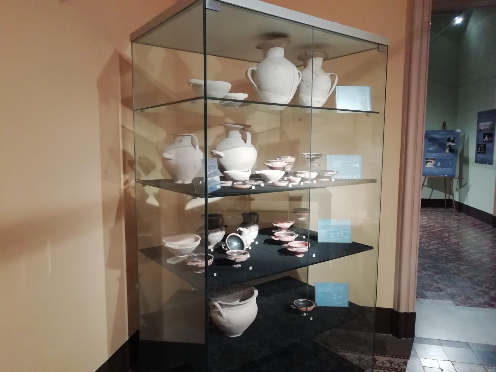 Certamente, di primaria importanza è l’esposizione dei reperti archeologici, che noi abbiamo avuto la possibilità di visitare grazie alla guida della giornalista Alessia Giaquinta. La cosa interessante di questi resti è che la maggior parte di essi arriva dall’antico abitato indigeno di Monte Casasia: si tratta di ceramiche bianche, con motivi unici le quali, evidentemente, non hanno subito contaminazione greca. Contatti fra questa civiltà autoctona e quella ellenica, invece, sono sicuramente avvenuti in epoca posteriore e il museo raccoglie, in effetti, alcuni reperti di chiara ascendenza greca.