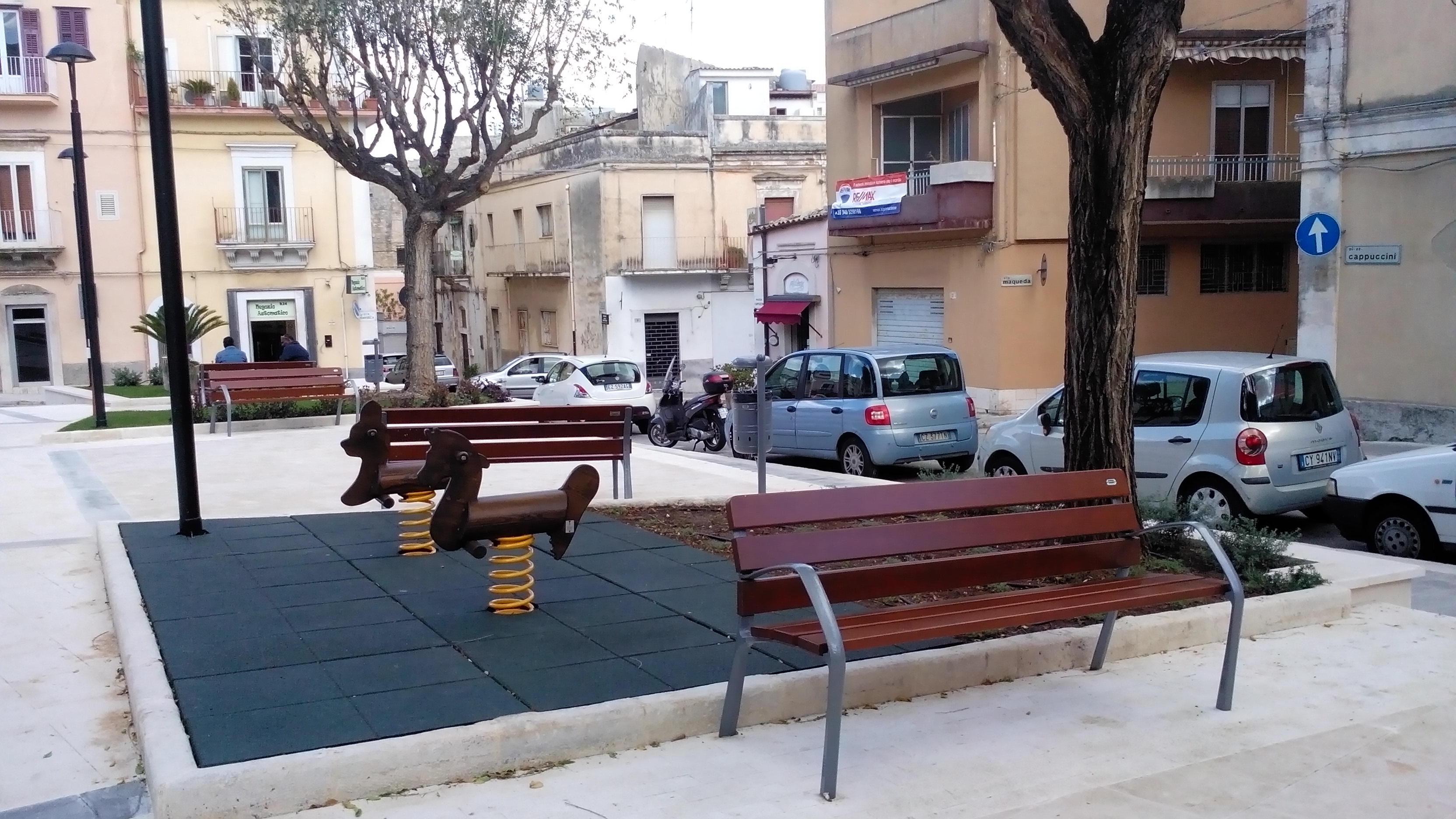Panchine e giochini in piazza Cappuccini a Ragusa