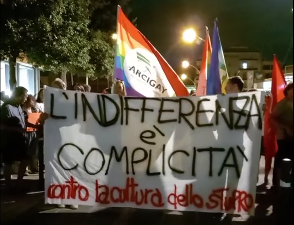 I promotori hanno spiegato che l’evento è stato promosso “per dire NO alla cultura dello stupro, per chiedere a gran voce che sin da subito si inizi a lavorare nelle scuole, nei luoghi di aggregazione sociale, sui luoghi di lavoro per sradicare quella cultura e coltivare un’educazione diffusa alla sessualità positiva, all’affettività, al consenso e alle differenze. Ma anche per ribadire che la violenza di genere è un fenomeno sistemico e strutturale figlio del patriarcato, che non conosce limiti di età, confini geografici, nazionalità e classe, e che quindi riguarda la società intera e dobbiamo assumercene la responsabilità collettiva”. Tra gli interventi d’apertura quelli del presidente di Arcigay, Andrea Ragusa e della vicepresidente Federica Schembri.