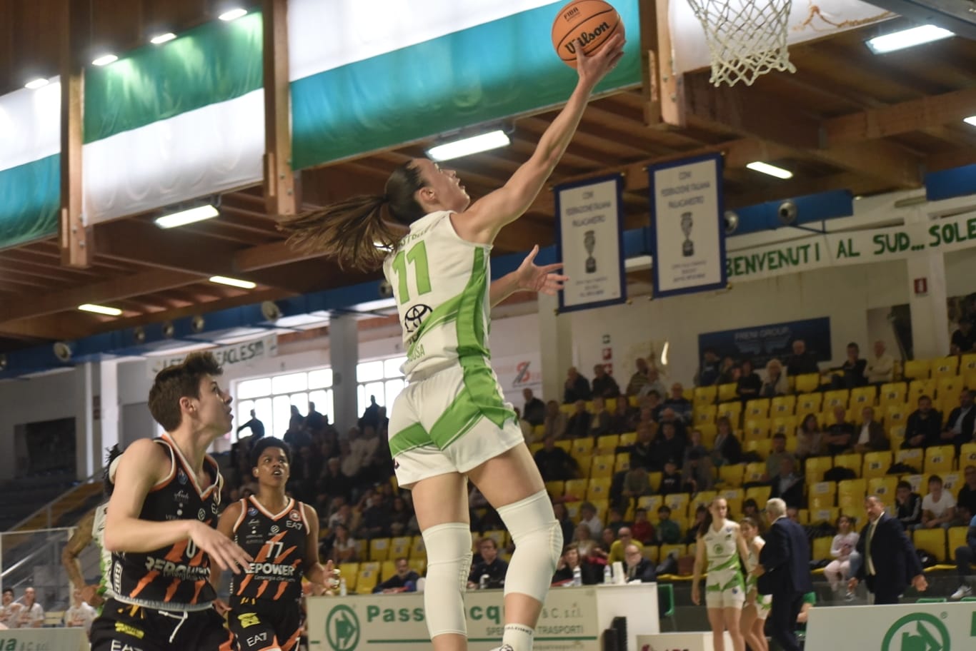 Ragusa chiude l’ultima gara casalinga di regular season con la vittoria su Sanga Milano, consolidando un sesto posto in classifica che, a onor del vero, non era più in discussione, prima dell’ultima giornata di campionato che Milazzo e compagne giocheranno a Battipaglia e soprattutto prima dei playoff. Ancora priva di Chidom e Spreafico la formazione di coach Lino Lardo mette in campo una prova di grande concentrazione e determinazione, soprattutto dal punto di vista difensivo, con il tecnico biancoverde che dà minuti importanti anche a Matea Nicolic, che risponde presente. Ragusa parte bene con Jakubcova e Thomas, risponde Milano con Beretta e Turmel, a 2’30’’ il punteggio è di 14-8, Milazzo chiude la prima frazione con la tripla del 21-13. Milazzo (mvp della partita con 23 punti personali) si prende la squadra in mano nella seconda frazione e Ragusa aumenta il proprio vantaggio, a metà secondo quarto il punteggio è di 31-17, che poi diventa 38-25 all’intervallo lungo. Milano si presenta squadra diversa all’inizio del terzo parziale e rosicchia svantaggio alla formazione di casa con Turmel e Dornstauder, poi un break di 7-0 firmato Juskaite e Nicolic chiude la terza frazione sul 56-42. L’inerzia della partita non cambia nella quarta frazione e Ragusa vince con il punteggio di 73-54. “Non c’è stato calo di tensione – commenta coach Lino Lardo – e questa era sicuramente una cosa importante. Abbiamo lavorato in settimana non al completo, però c’è stata concentrazione, volevamo fare una partita seria, anche perché Milano e Battipaglia si giocano gli ultimi posti e poi cercare quella mentalità che ci serve per affrontare al meglio i playoff. Alle due assenze si è aggiunta anche quella di Di Fine che poteva aiutarci, quindi un plauso alle mie ragazze e un plauso anche al pubblico che questa sera ci ha dato una grossissima mano”.