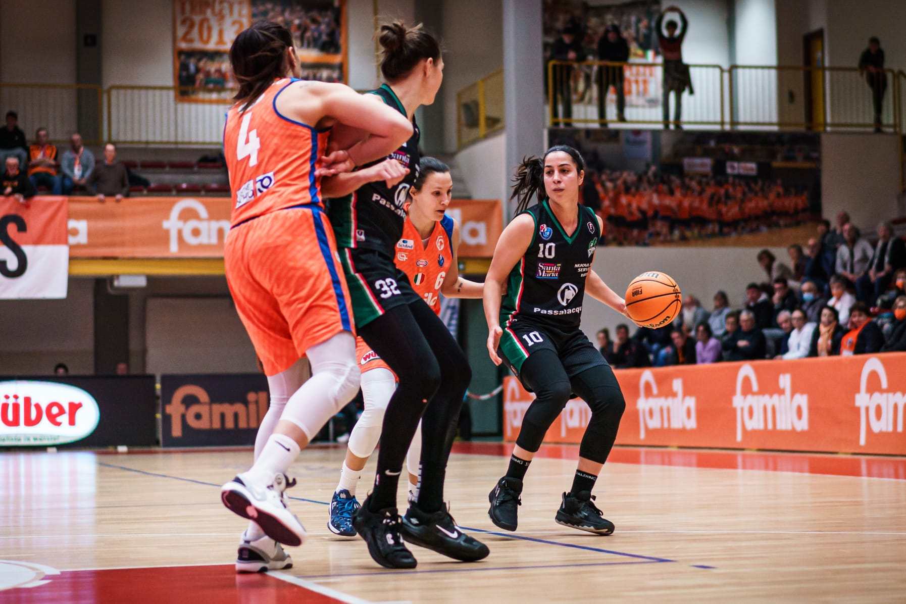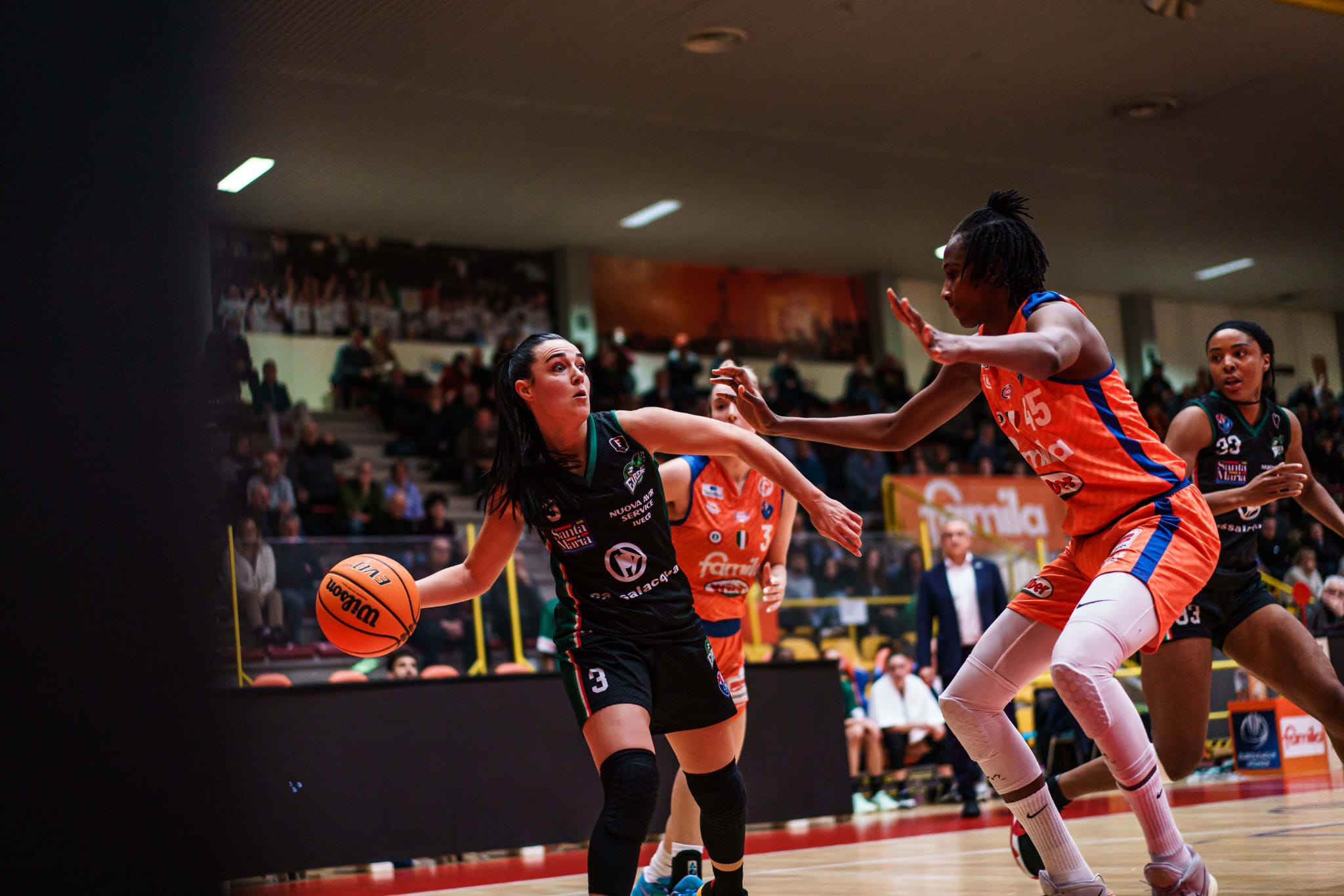 Si inizia a mille all’ora, con le due squadre che segnano tantissimo e con gli attacchi che superano nettamente le due difese: 24-21 è il punteggio sul tabellone luminoso dell’impianto veneto al termine dei primi 10’ di partita. Tutto il quintetto ragusano va a segno mentre dall’altra parte sono soprattutto Mabrey e Howard a fare la voce grossa quando all’intervallo lungo, il punteggio si assesta sul 49-43 in favore delle orange. Ragusa esce bene dagli spogliatoi e dopo essere stata sotto di 9 lunghezze piazza il parziale che la porta per la prima volta in vantaggio, seppur di una sola lunghezza. Non dura molto, perché Schio risponde colpo su colpo, mettendo a segno altri 24 punti nella terza frazione di gioco contro i 20 delle biancoverdi.