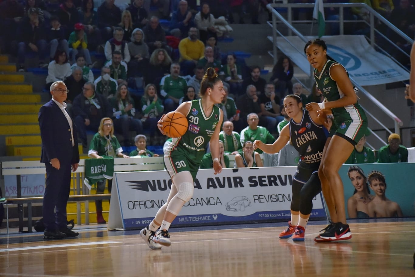 Ragusa soffre ma alla fine porta a casa un match importante contro Faenza, al termine di una gara nella quale Consolini e compagne partono male ma poi pian piano si ritrovano, evitando il sorpasso di Campobasso che vince il suo incontro casalingo con Crema e che resta così appaiato con la Passalacqua a quota 24 ma con il vantaggio della differenza canestri in favore delle iblee. I 31 punti subiti da Ragusa nei primi 10 minuti di partita non lasciano presagire un esito dei più felici per il pubblico di casa, ma la squadra di Lardo aggiusta prima la difesa, poi inizia a trovare buone giocate in attacco e rimane attaccata sempre alla partita, restando però sempre sotto nel punteggio.
