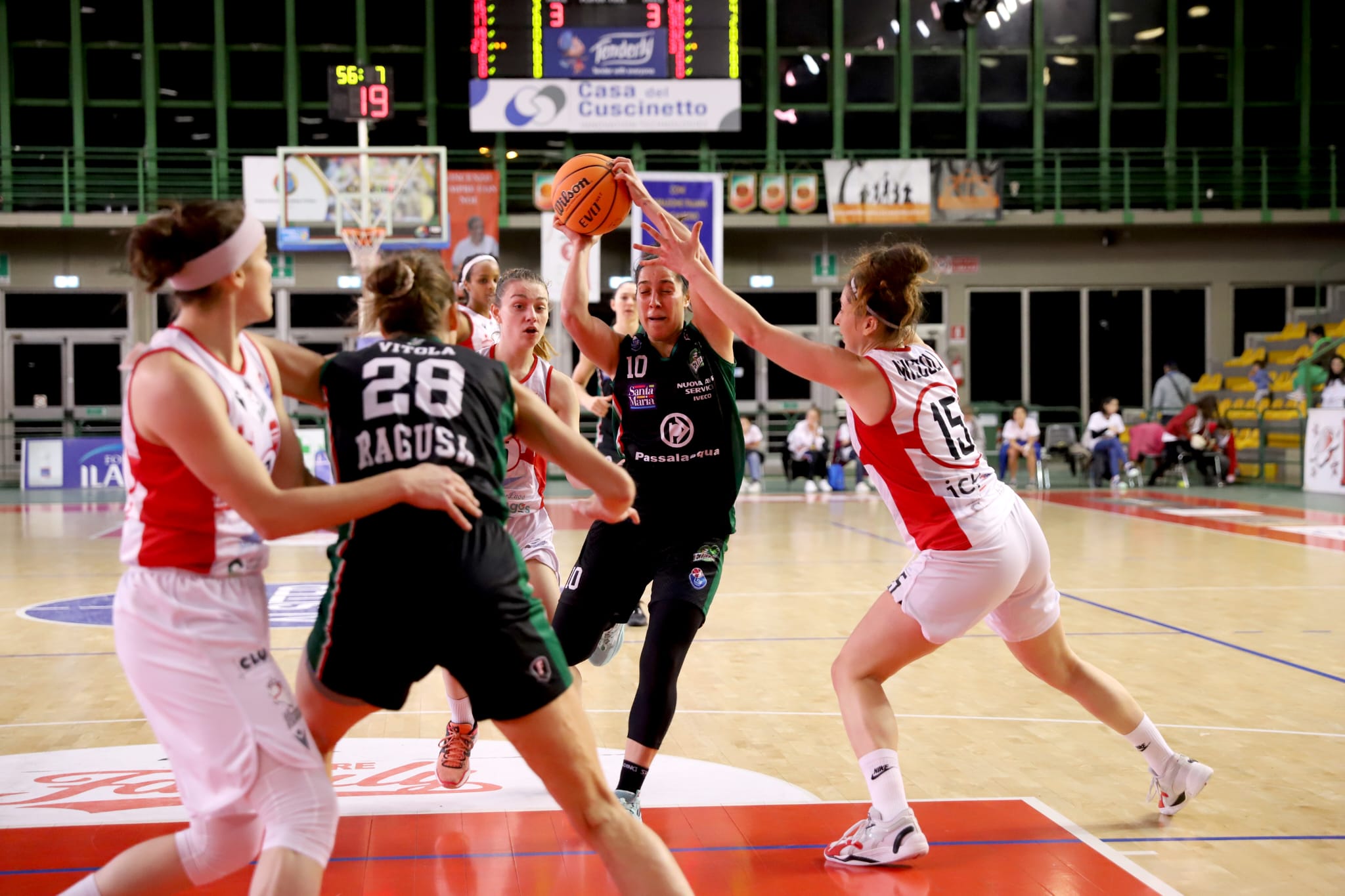 Terza consecutiva per la Passalacqua che non fallisce nemmeno a Lucca e, pur soffrendo, porta a casa una vittoria importante, non foss’altro perché maturata in un finale di gara in cui, fino a poco tempo fa, Dotto e compagne sembravano smarrire la bussola ad appannaggio delle avversarie. E invece dopo essere stata ripresa nel finale, Ragusa è riuscita a restare lucida e ad aggiudicarsi la partita per 74-77 quando l’ultima tripla di Sara Bocchetti che avrebbe significato overtime, non è andata a segno.