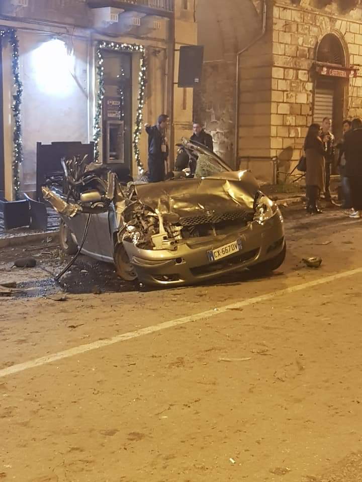 Pauroso incidente nel corso della notte in pieno centro storico a Modica bassa. Per cause ancora in corso di accertamento, probabilmente l’alta velocità, una autovettura Renault con cinque persone a bordo, tutte di Santa Croce Camerina verso le 3,30 circa, ad altissima velocità ha perso il controllo del mezzo andando a sbattere contro tre auto in sosta, una Yaris(distruttura), una Fiat Panda e una Kia. Poi ha finito la corsa contro le locale contro le strutture dei locvali commerciali distruggendole totalmente .