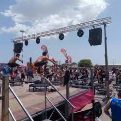 La forza del trampolino spacca alla festa dello sport. Straordinaria sessione di Crush style ieri al centro commerciale Le Masserie di Ragusa in occasione della X edizione di un appuntamento ormai diventato una sorta di tradizione per tutti gli appassionati sportivi. Savio Magro, il founder e master della disciplina che, nel corso di questi ultimi mesi, ha fatto sempre più proseliti, ha guidato, dal palco installato nella parte esterna del centro commerciale, un allenamento molto intenso che ha focalizzato l’attenzione di chi il Crush style già conosce e quindi ha colto l’occasione per perfezionarsi ancora di più approfittando della ghiotta possibilità ma anche di numerosi curiosi che sono rimasti colpiti da questa pratica di allenamento caratterizzata dall’utilizzo di un trampolino elastico, molti dei quali non vedono l’ora di poterla praticare.