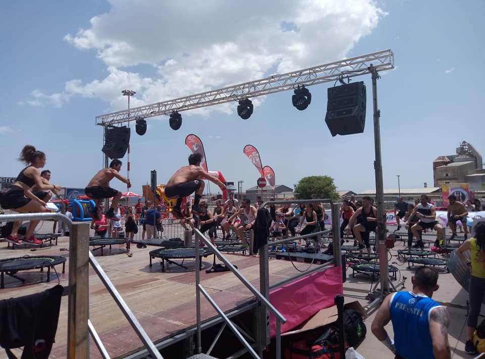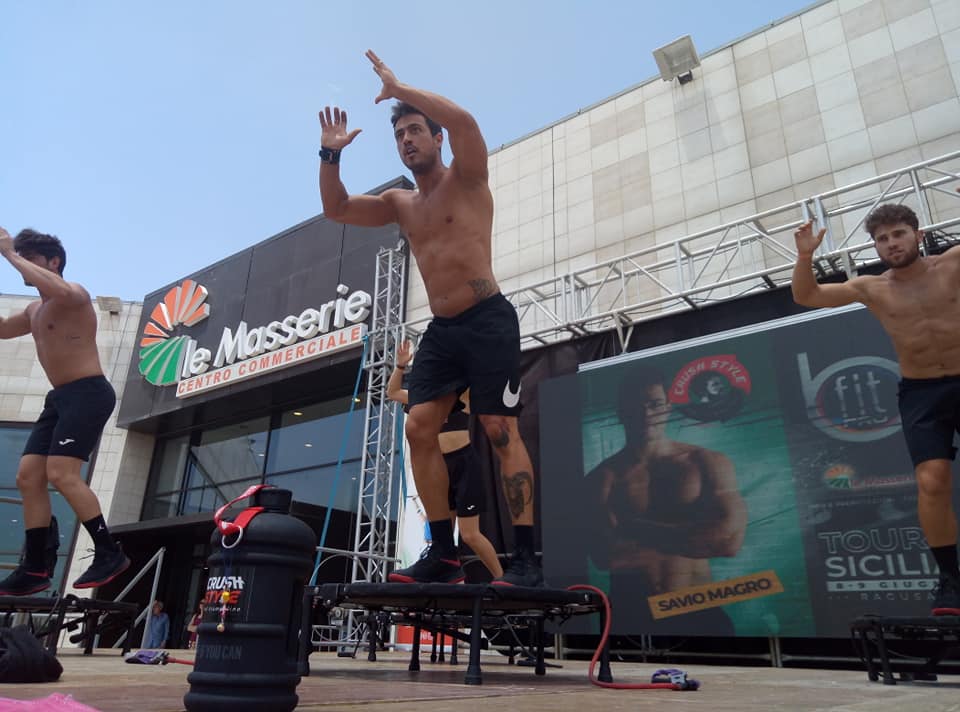 La forza del trampolino spacca alla festa dello sport. Straordinaria sessione di Crush style ieri al centro commerciale Le Masserie di Ragusa in occasione della X edizione di un appuntamento ormai diventato una sorta di tradizione per tutti gli appassionati sportivi. Savio Magro, il founder e master della disciplina che, nel corso di questi ultimi mesi, ha fatto sempre più proseliti, ha guidato, dal palco installato nella parte esterna del centro commerciale, un allenamento molto intenso che ha focalizzato l’attenzione di chi il Crush style già conosce e quindi ha colto l’occasione per perfezionarsi ancora di più approfittando della ghiotta possibilità ma anche di numerosi curiosi che sono rimasti colpiti da questa pratica di allenamento caratterizzata dall’utilizzo di un trampolino elastico, molti dei quali non vedono l’ora di poterla praticare.