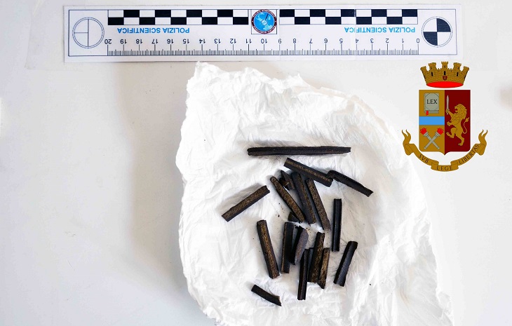 Dopo un breve dialogo tra i due, gli agenti notavano che lo straniero era in procinto di cedere un involucro dal contenuto sospetto e si decideva quindi di intervenire immediatamente. I due soggetti venivano prontamente bloccati e sottoposti a perquisizione. All’interno di una tasca del soggetto extracomunitario si rinveniva una stecca di sostanza stupefacente, presumibilmente hashish, mentre, occultato nelle immediate vicinanze, si rinveniva un ulteriore quantitativo di sostanza stupefacente del tipo hashish, il cui peso complessivo era di 14,5 grammi. Il tutto veniva debitamente sequestrato.
