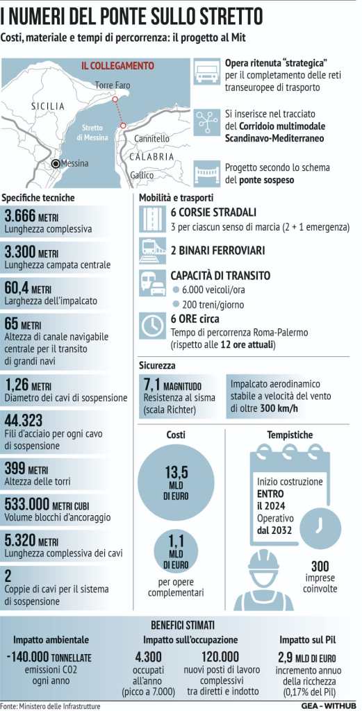 L’approvazione da parte del CIPESS è prevista per la metà dell’anno in corso, con conseguente avvio dei lavori nell’estate del 2024 e apertura del Ponte al traffico nel 2032.