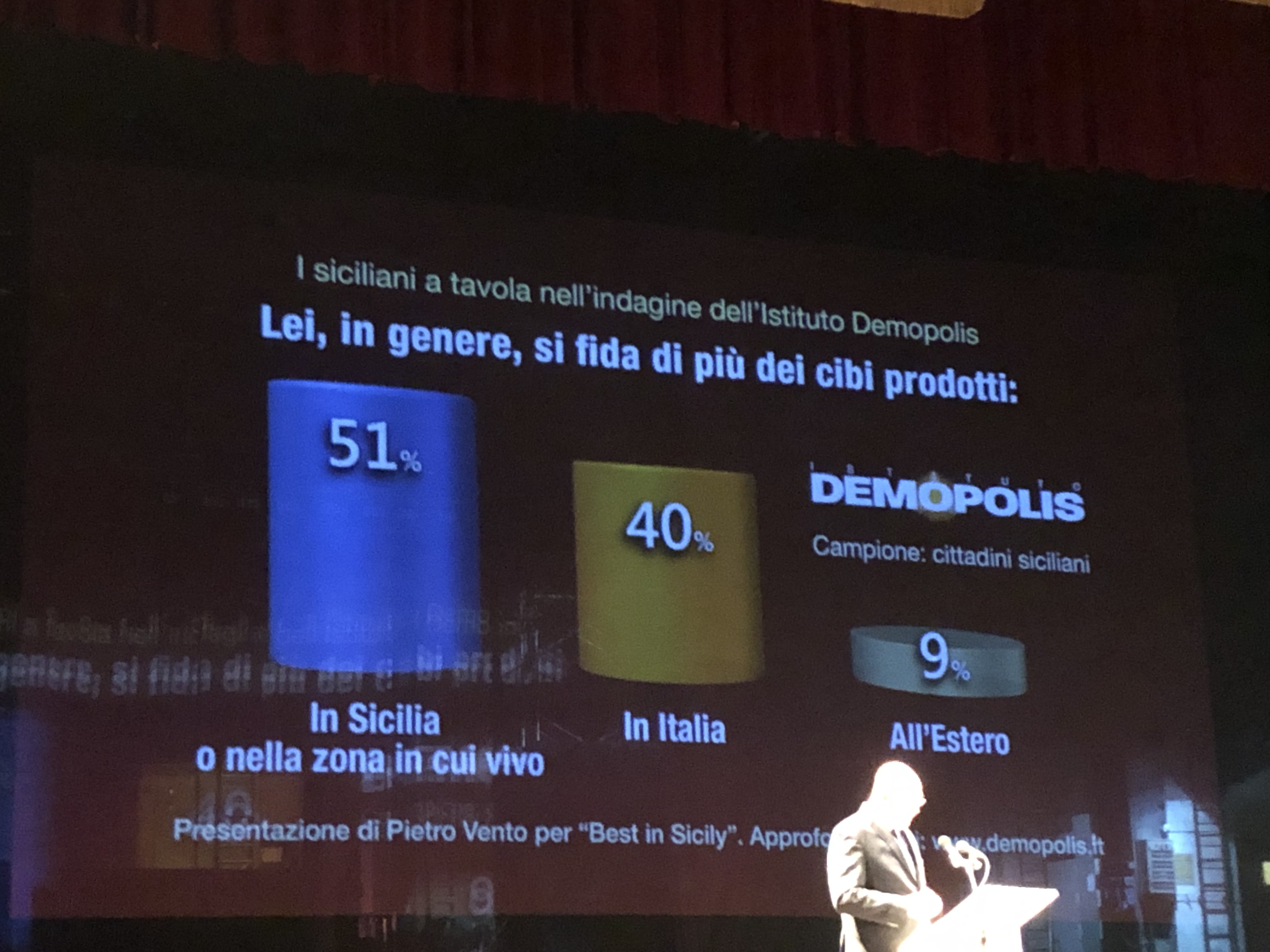 La dodicesima edizione della manifestazione organizzata da “Cronache di Gusto” si è aperta con dati e numeri sulle preferenze enogastronomiche e turistiche siciliane snocciolati da Pietro Vento, direttore dell’Istituto Demopolis. Dopo il saluto del direttore di Cronache di Gusto, Fabrizio Carrera, il palcoscenico ha ospitato Oscar Farinetti, patron di Eataly. L’imprenditore torinese ha scommesso sulla Sicilia, entrando in società con il cavaliere Francesco Tornatore con cui produrrà del vino.