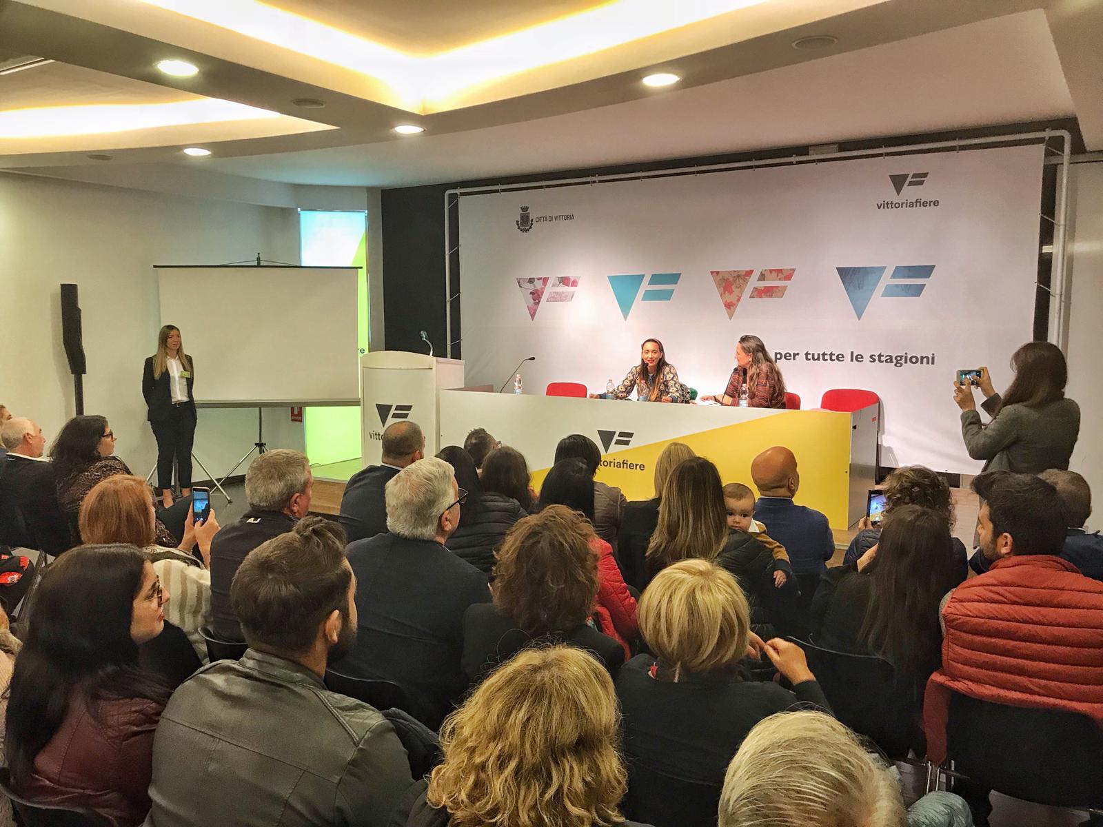VITTORIA – “I siciliani sono molto calorosi e capaci di osservare, applauso”, Chiara Francini esordisce chiamando e ricevendo l’applauso del numeroso pubblico accorso nella Sala Convegni del Polo Fieristico della Città di Vittoria. L’attrice ha animato la seconda giornata della 52ᵅ Campionaria Nazionale d’autunno presentando il suo ultimo romanzo, “Mia madre non lo deve sapere”, edito da Rizzoli. Il primo dei tre appuntamenti culturali, curati da Alessandro di Salvo, e inseriti nel programma della Campionaria, ha riempito oltre la sua capienza la sala convegni. Dopo il saluto del direttore Davide La Rosa, l’attrice e conduttrice toscana, ha dialogato con la giornalista Giada Drocker, mostrando l’esuberanza del suo essere attrice ma svelando anche la sua vena da scrittrice (è al secondo romanzo dopo, “Non parlare con la bocca piena” del 2017).