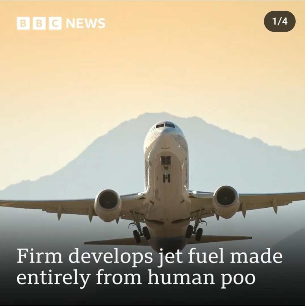 E calcoli alla mano, Hygate sostiene che ogni essere umano, produce in un anno abbastanza liquami da produrre 4-5 litri di biocarburante per aerei; per un volo Londra-New York sarebbero necessari gli scarichi fognari annuali di 10.000 persone. E in conclusione, “la fornitura totale di acque reflue del Regno Unito soddisferebbe circa il 5% della domanda totale di carburante per l’aviazione del paese”.