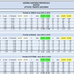 Tendenzialmente, i codici verdi aumentano, tranne nell’attività del pronto soccorso del presidio ospedaliero di Ragusa che passa da 12.036 del 2018 al 9.291 del 2019.