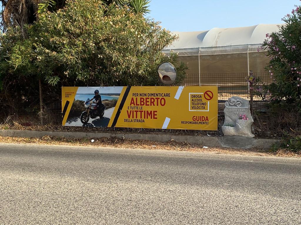 Uno striscione “per non dimenticare Alberto e tutte le vittime della strada” e per ricordare di non mettersi alla guida sotto gli effetti di droga, alcool, di permettersi distrazioni al telefono mentre si guida o di non osservare una velocità adeguata. Questo riportava uno striscione rimosso da qualcuno, pochi giorni prima dell’ondata di maltempo.