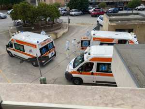 Quelle ambulanze in fila al pronto soccorso di Vittoria con dentro i pazienti covid. FOTO