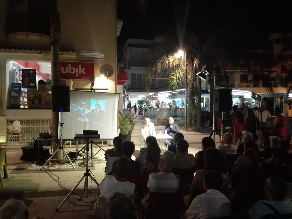 La serata, allietata dal tepore estivo della bellissima location di Piazza Torre che si affaccia sul mare, vedrà diversi momenti in compagnia di Giorgio Massari per le case editrici Edizioni Sion e Periferie Edizioni, Pippo Gurrieri per Edizioni La Fiaccola e Punto L ed Emanuele Cavarra per le edizioni Kreativamente. La serata inizierà con la presentazione del nuovo libro *Schiavi e padroni nella Sicila romana* di Giovanni Distefano che dialogherà con Gurrieri. A seguire la lettura di alcune pagine di libri scelti dagli stessi ospiti, considerati da loro più rappresentativi o evocativi. Infine, l’avvio del dibattito dedicato all’analisi dello stato di salute dell’editoria locale, delle sfide attuali e delle prospettive future.