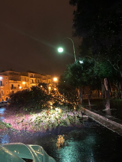 Raffiche di vento in nottata spezzano più alberi in centro storico a Ragusa. FOTO