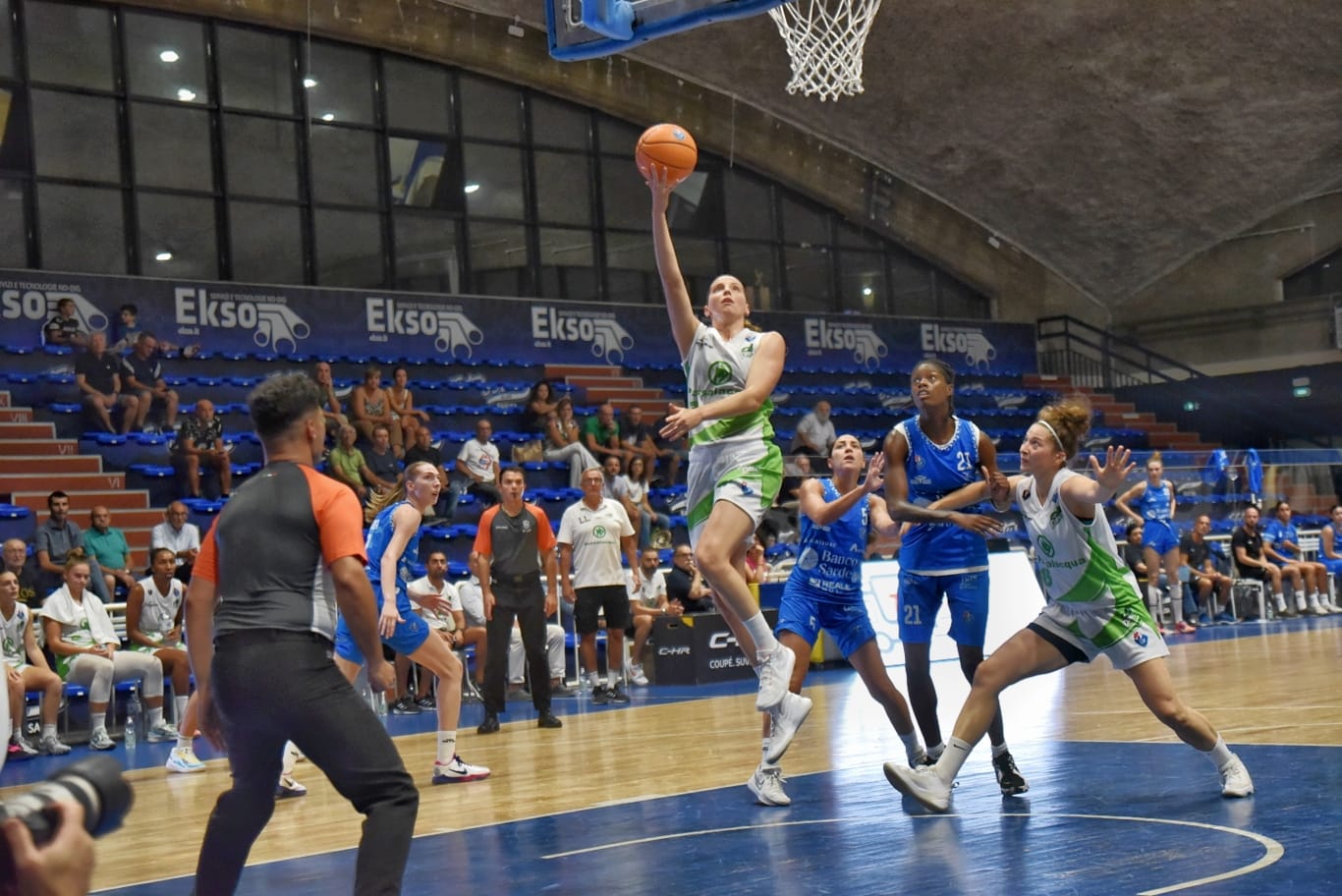 Ragusa si aggiudica l’ottava edizione del Memorial Francesco Passalacqua. Dopo avere perso infatti di appena due lunghezze, 65-67, il primo incontro con la Dinamo Sassari, ieri sera è stata tutt’altra partita, con Spreafico e compagne che si sono imposte per 89-61. Ma come sempre accade in questi tornei precampionato, al di là del risultato finale, è importante che le giocatrici mettano benzina nelle gambe e che perfezionino tutti i meccanismi di gioco, in vista dei primi appuntamenti ufficiali. “Aspettavamo queste due partite proprio perché dopo tre settimane di allenamento avevamo bisogno di giocare – commenta coach Lino Lardo – non siamo ancora pronti dal punto di vista atletico, ma stiamo lavorando forte con Paolo Modica; le gambe sono ancora pesanti e si è visto soprattutto nella prima giornata, nella seconda leggermente meglio. Quindi l’importante era giocare e giocare con una squadra come Sassari che è sicuramente una compagine importante anche se le mancavano un paio di giocatrici. Ci tenevamo però a fare bene ed anche ad onorare questo torneo che è ovviamente sentito dalla proprietà e dalla famiglia Passalacqua”. Come da tradizione, al termine della manifestazione, sono stati assegnati i premi: coppe per la prima e la seconda squadra classificata, ritirate dalle due capitane, Laura Spreafico per Ragusa e Debora Carangelo per Sassari e consegnate rispettivamente dalla signora Passalacqua, Rosaria Abbate e dal presidente Davide Passalacqua; premio migliore giovane “Nuccia Salerno”, consegnato da Salvatore Iacono, che è andato alla giocatrice di Ragusa, Silvia Pastrello; premio migliore realizzatrice “Francesco Carmelo Dimartino”, consegnato dalla signora Rosa Cannata, che è andato alla giocatrice di Sassari, Debora Carangelo; Mvp del torneo, premio “Maurizio Ferrara”, consegnato dalla signora Rita Albani, che è andato alla giocatrice di Ragusa, Laura Juskaite.