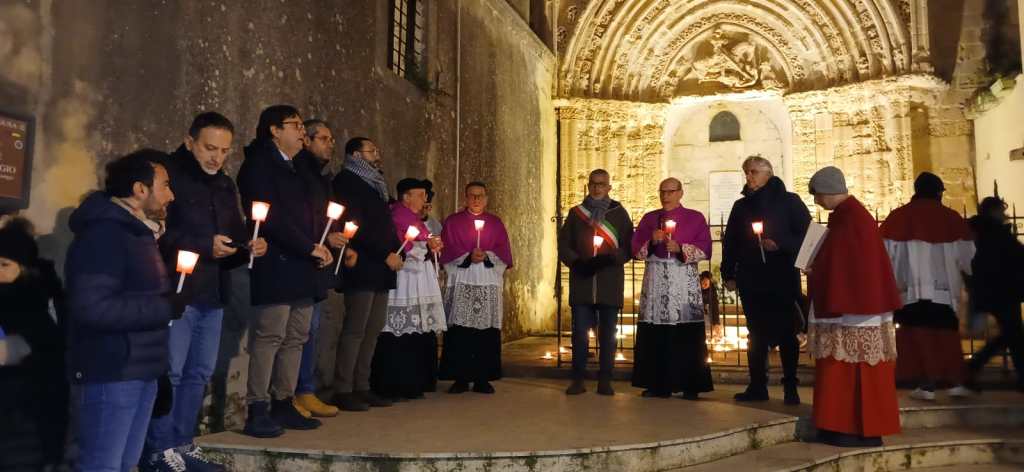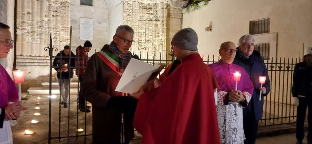 La serata è proseguita con una fiaccolata dal Duomo di San Giorgio, animata da un profondo senso di partecipazione, e con la lettura dell’atto di affidamento della città ai Santi Patroni, un gesto solenne simbolo di fede, speranza e rinascita.