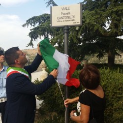 Una piccola folla commossa ed in lacrime all’atto della scopertura della targa di intitolazione su cui è scritto “Viale Pamela Canzonieri Vittima di femminicidio 1977-2016”.
