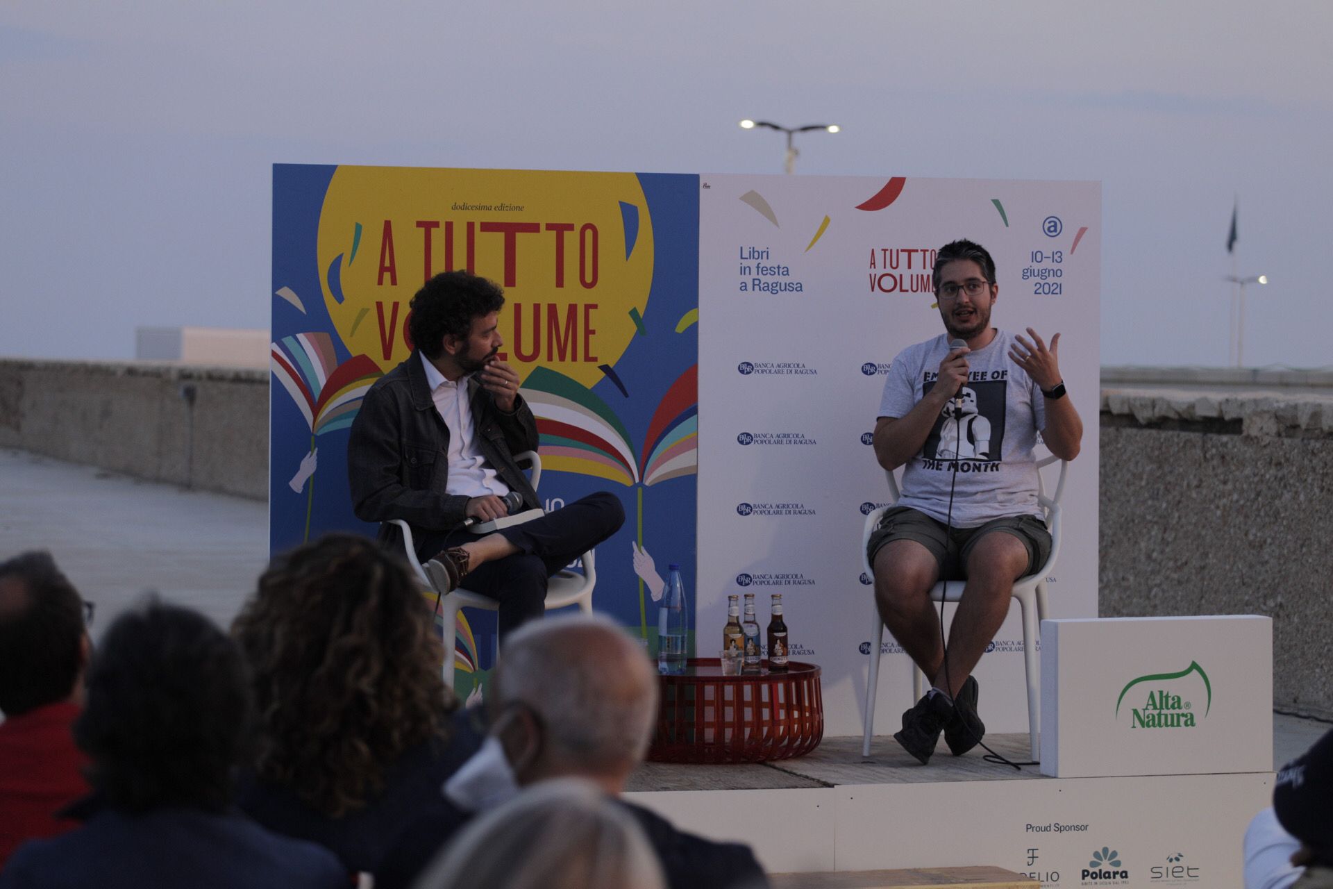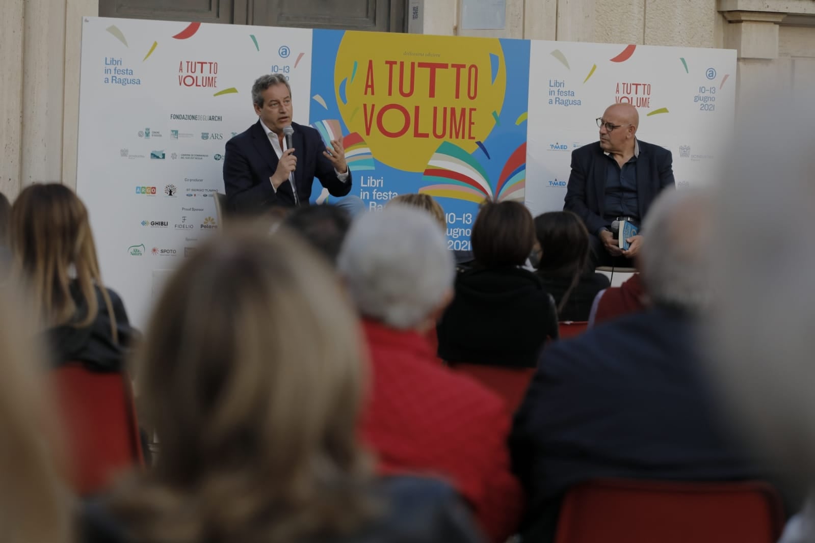 Quattro giorni lunghi lunghissimi, straordinariamente intensi per gli organizzatori, ricchissimi per i fruitori, oltre 10 mila prenotazioni nonostante le restrizioni, grazie a 44 incontri in cui autori e lettori si ritrovano finalmente in presenza in luoghi insoliti che si trasformano in auditorium e sale conferenze all’aperto. Piazze, vie, giardini, chiostri di palazzi storici anche per questa dodicesima edizione di “A Tutto Volume” hanno ospitato a Ragusa i vari momenti, quasi tutti in sold out, dove le pagine si intrecciano alle storie, dove la fantasia dei romanzieri regala realtà diverse e parallele, dove i temi di attualità, come ad esempio il virus, diventa un interessante caso di approfondimento su cui continuare a riflettere e interrogarsi insieme. I 44 incontri diventano così tessere di un puzzle che rappresenta la condivisione collettiva del piacere di leggere e, quest’anno più che mai a seguito della pandemia, la voglia di ritrovarsi insieme pur sempre in sicurezza e mantenendo il distanziamento sociale.