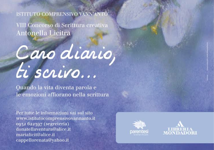 RAGUSA – Spegne otto candeline quest’anno il concorso di scrittura creativa “Caro diario, ti scrivo…” dedicato all’insegnante Antonella Licitra, scomparsa prematuramente qualche anno fa, moglie dell’artista Sandro Bracchitta. Ad organizzarlo come sempre l’Istituto Comprensivo “Vann’Antò” di Ragusa che il prossimo 31 maggio accoglierà i finalisti di questa ottava edizione, scelti tra gli alunni delle III classi delle scuole secondarie inferiori del Comune di Ragusa che sono stati invitati ad elaborare un testo inedito, sotto forma di diario, in cui raccontare esperienze di vita, emozioni o sentimenti.