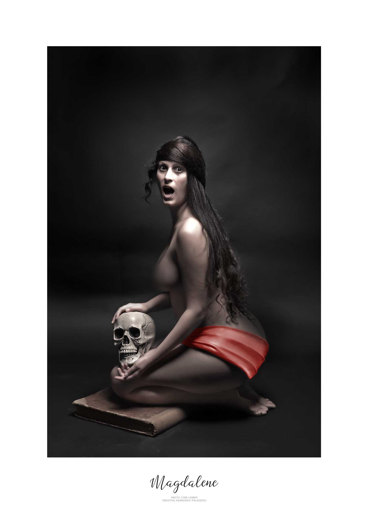 Nelle foto, Toni Campo affida il suo messaggio interamente ai personaggi, ai loro volti, alla gestualità e alla corporeità. Quasi del tutto assenti gli elementi esterni (es: la Maddalena con il teschio). Questo dà maggiore forza espressiva ai corpi ed ai movimenti su cui unicamente si concentra lo sguardo dello spettatore.