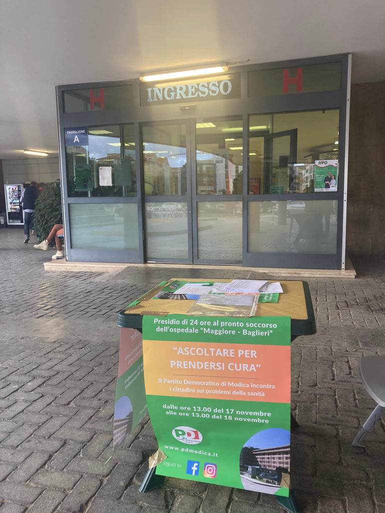 Il Partito Democratico di Modica ha avviato oggi l’iniziativa “Ascoltare per Prendersi Cura”, un presidio di 24 ore davanti al pronto soccorso dell’Ospedale Maggiore, con l’obiettivo di entrare in contatto diretto con le reali difficoltà che i cittadini spesso affrontano durante lunghe attese e percorsi sanitari complessi. L’iniziativa, iniziata alle 13 di oggi, si concluderà alla stessa ora domani.